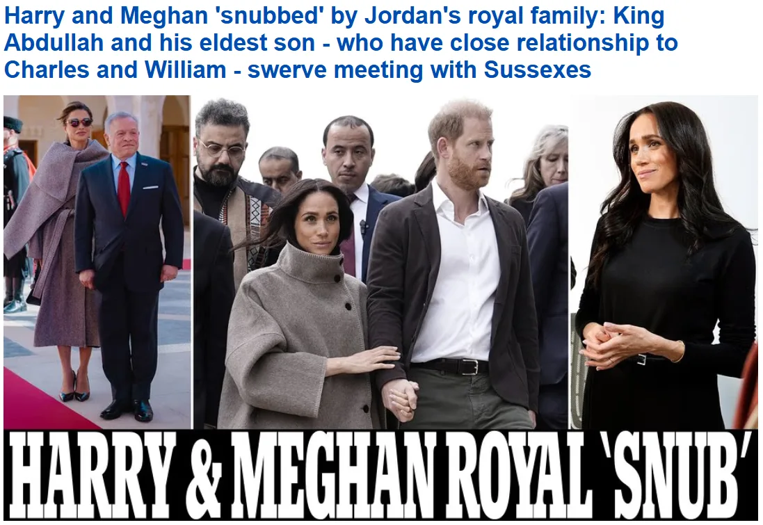 ⚡ Гарри и Меган были проигнорированы иорданской королевской семьей: король Абдалла и его старший сын, которые находятся в близких отношениях с Карлом и Уильямом, избежали встречи с Сассексами.