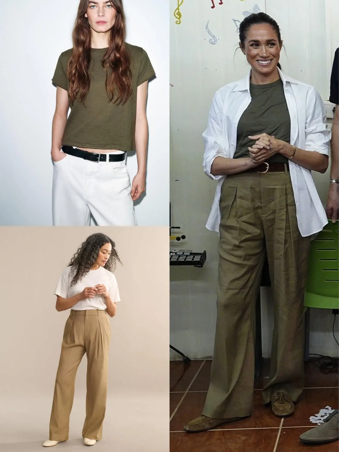 Футболка с коротким рукавом цвета хаки от Zara;