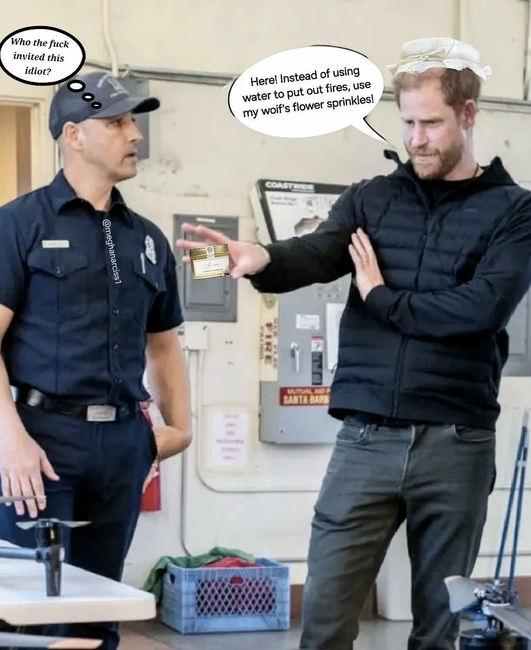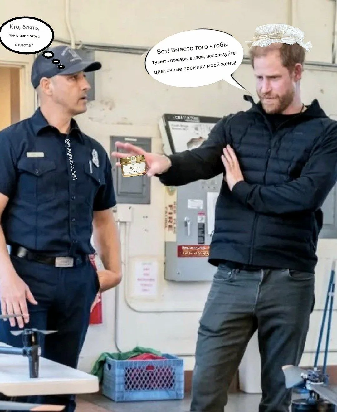 Первое появление принца Гарри на публике в 2026 году - визит к пожарным в Санта-Барбаре. Интернет-шутники откликнулись мемом.🤣