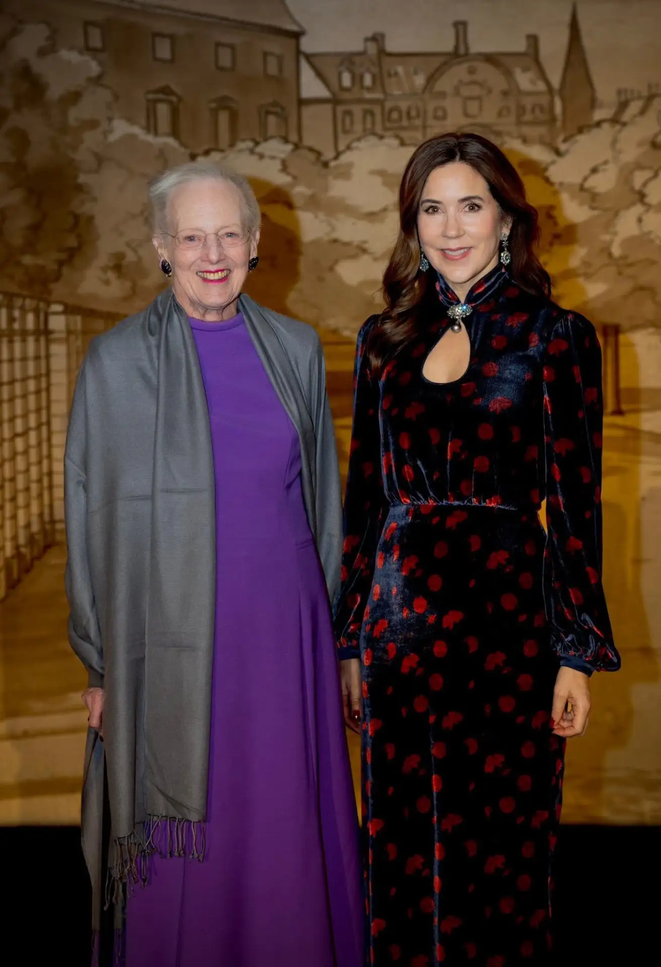 Вечер включал в себя праздничную программу, которая перенесла зрителей в путешествие по более чем 250-летней истории театра. После представления Мэри и Маргрете посетили новую выставку Придворного театра под названием "Театр во времени: 300 лет".