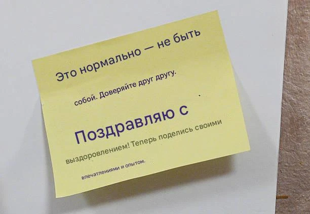 "Поздравляю вас с вашей преданностью делу и заботой о себе. Желаю вам дальнейшего выздоровления и счастья".