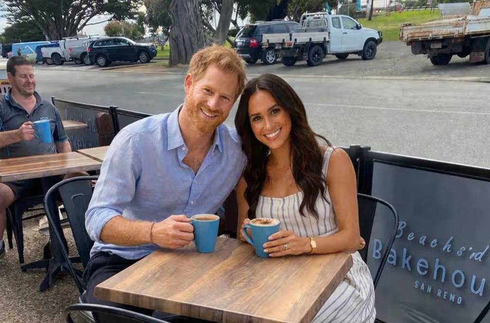 ‼️ Небольшое независимое кафе Beachside Bakehouse в Сан-Ремо, штат Виктория, максимально использовало "неофициальный" королевский визит Сассексов в Австралию, опубликовав фотографию, на которой пара, судя по всему, улыбается, наслаждаясь кофе на террасе кафе.