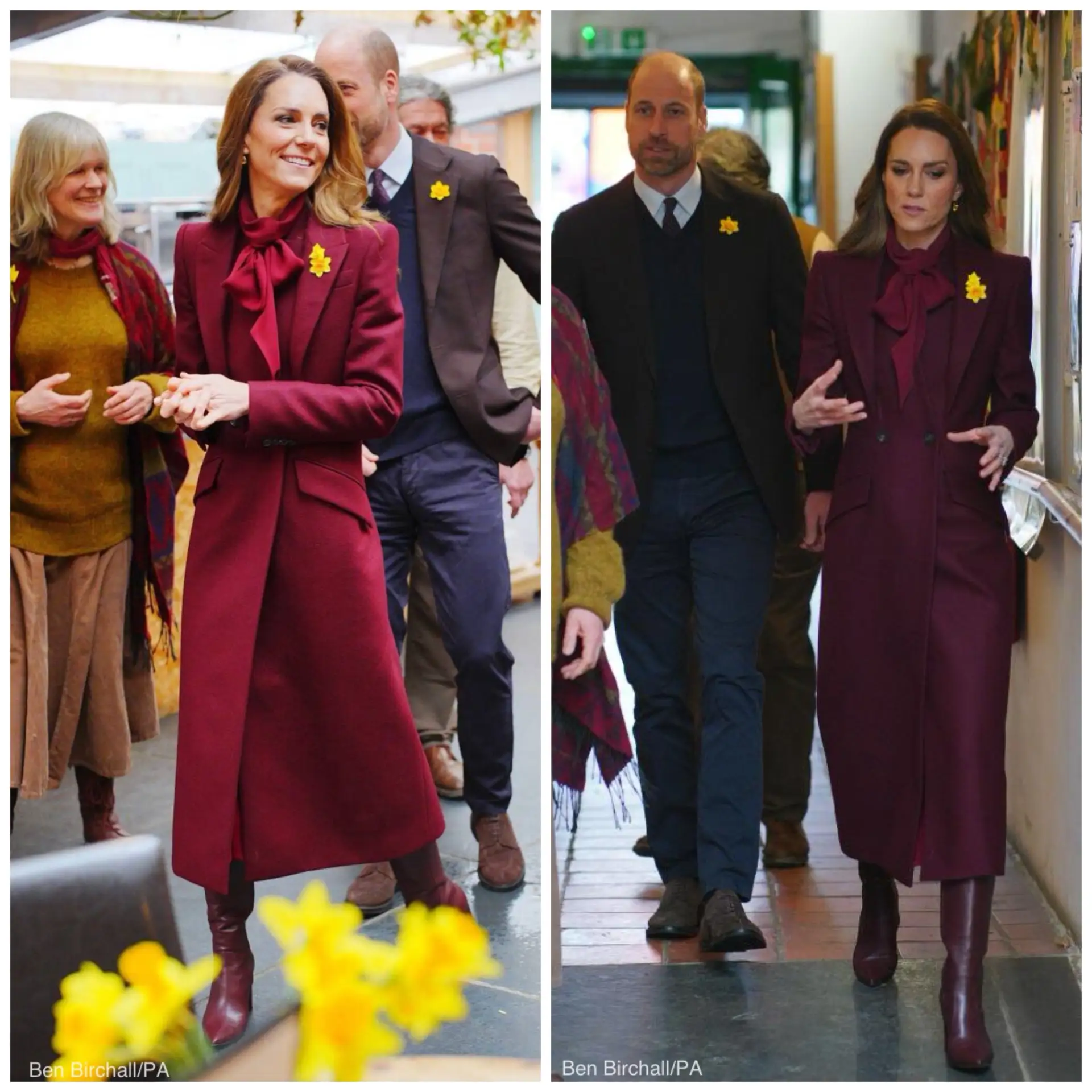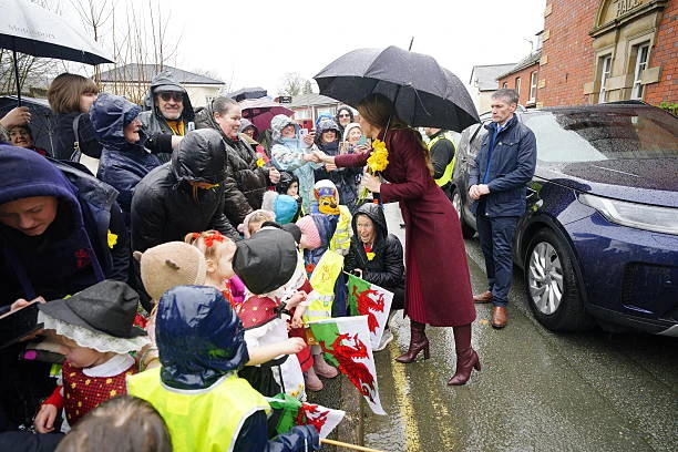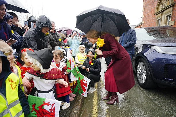 ⚡ Принц и принцесса Уэльские накануне дня Святого Давида прибыли в графство Поуис (Уэльс). Обратите внимание на нарциссы у них на лацканах - эти цветы являются символом дня Святого Давида.