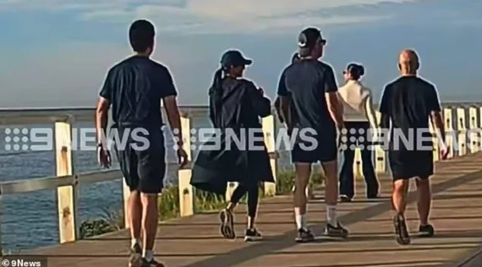 Гуляли в окружении сотрудников полиции штата Новый Южный Уэльс. Меган была одета в повседневную одежду: черное пальто, леггинсы и кроссовки, волосы были собраны в конский хвост.