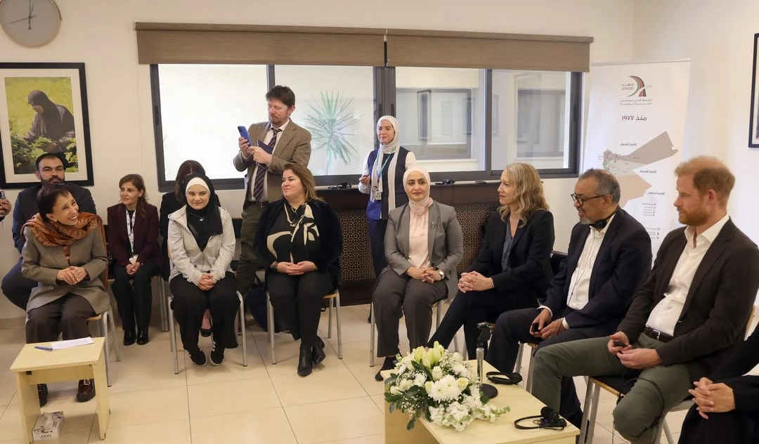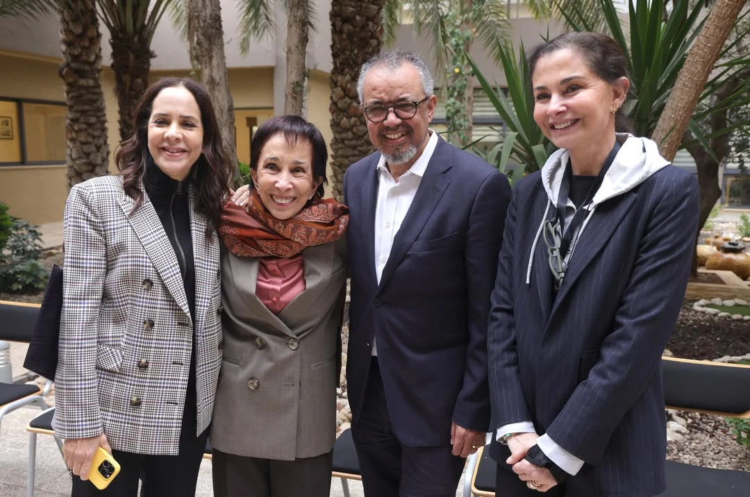 "В прошлый четверг (26 февраля) мне выпала честь приветствовать доктора Тедроса Адханома Гебрейесуса, генерального директора Всемирной организации здравоохранения (ВОЗ), и герцога и герцогиню Сассекских в Иорданском Хашимитском фонде развития человеческого потенциала (JOHUD) в присутствии моей дочери, Фарах Дагистани, исполнительного директора JOHUD.