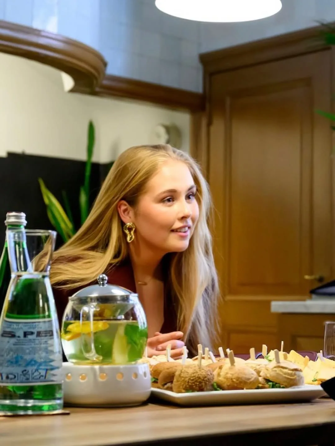 В элегантном бордовом костюме, несмотря на плотный график, она начала свой день с бранча с мэром.
