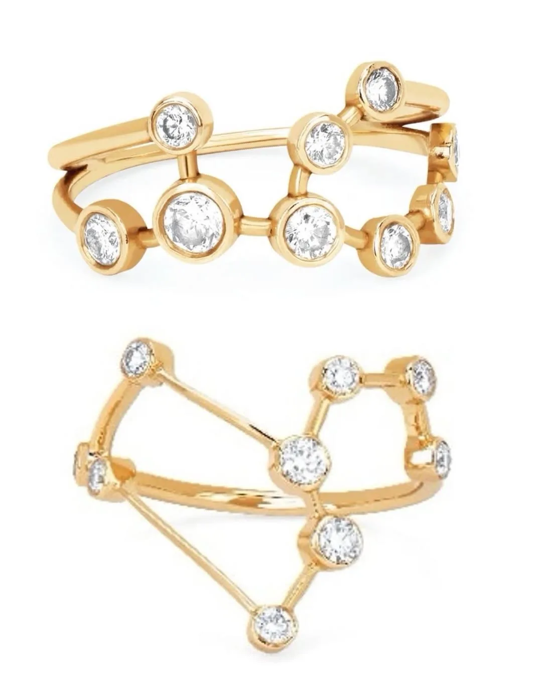 кольца с изображениями созвездия Льва (знак Зодиака Меган, 2673 доллара США) и Девы (знак Зодиака Гарри, 3204 доллара США ) от Logan Hollowell.