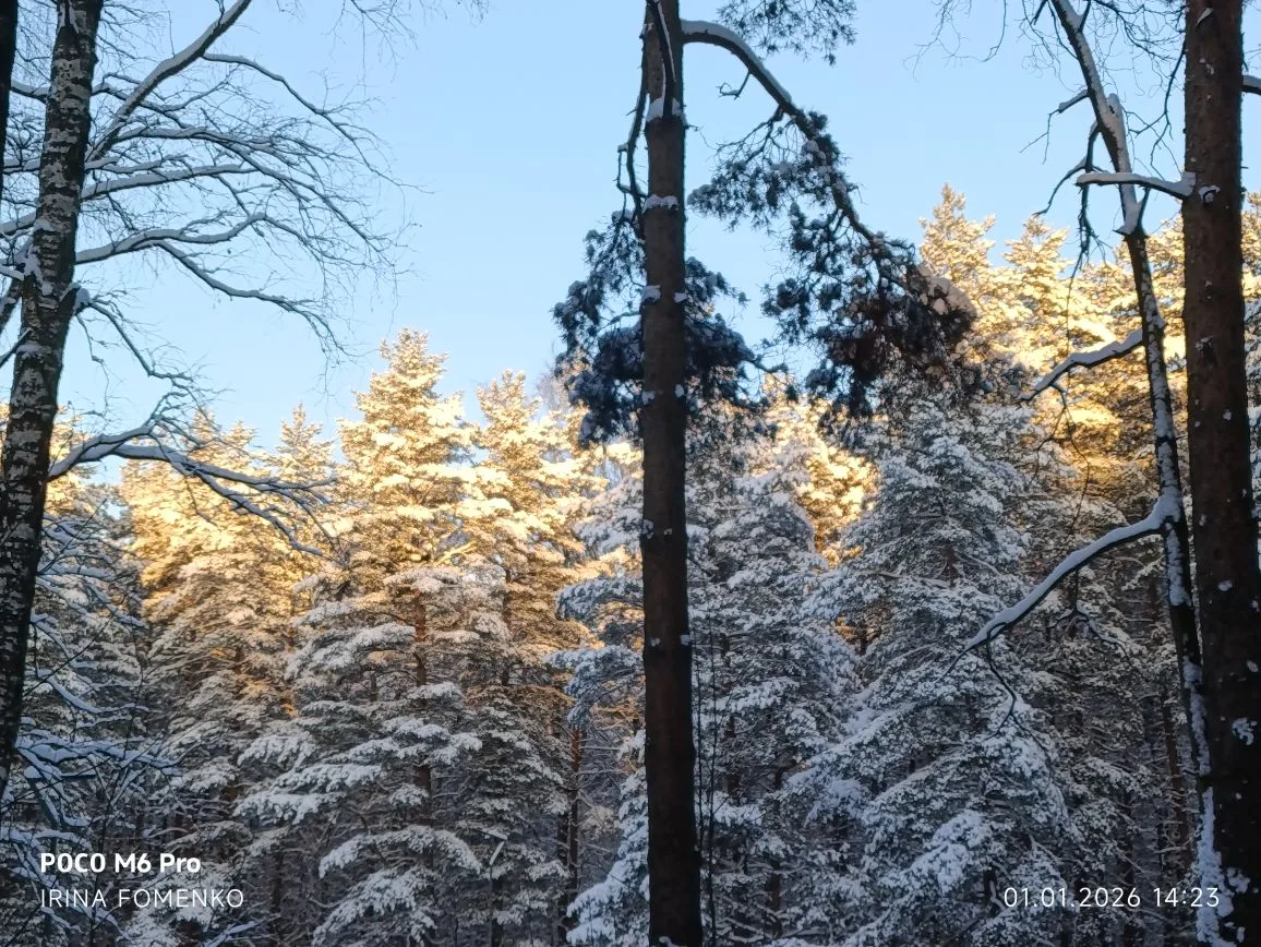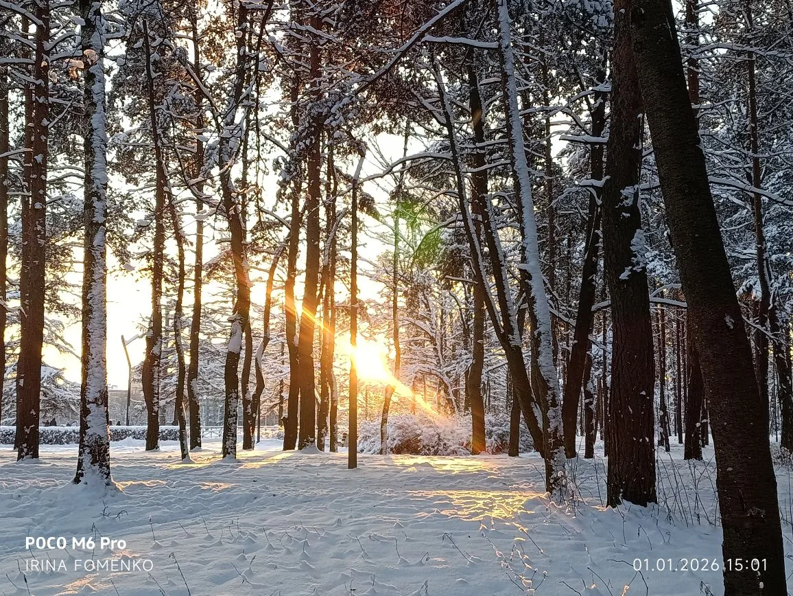 Первый день нового года оказался по-настоящему зимним с морозом и солнцем. Совершенно невозможно было оставаться дома и мы пошли гулять в парк Сосновка, который находится рядом с нашим домом.
