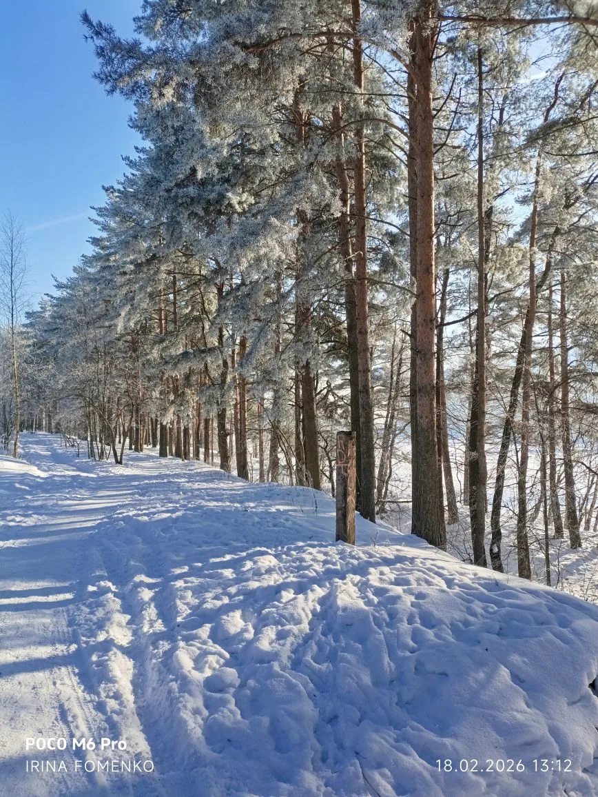 👣Сегодня пришлось идти сначала 3 км вдоль дамбы в одну сторону. Снег глубокий! Тропинок нет.