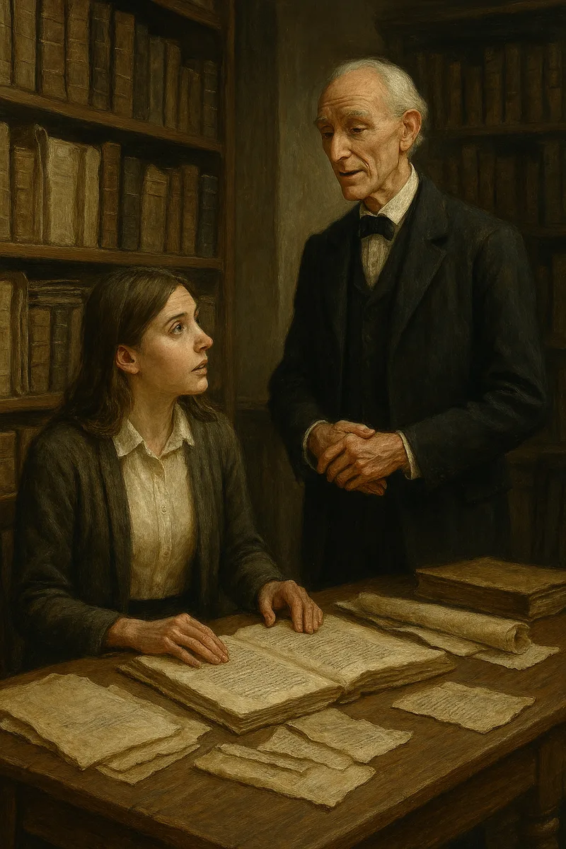 Архивы всегда были мне близки. Не из-за тишины, а из-за памяти, что живёт в каждом листе, в каждом камне. Я помню тот день, когда юная студентка вошла в зал, и я увидел в её взгляде — не просто любопытство, но желание услышать. Услышать то, что давно стало частью меня.