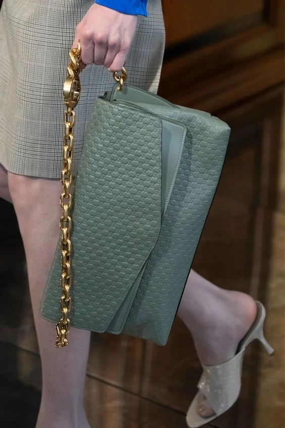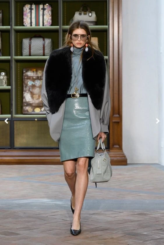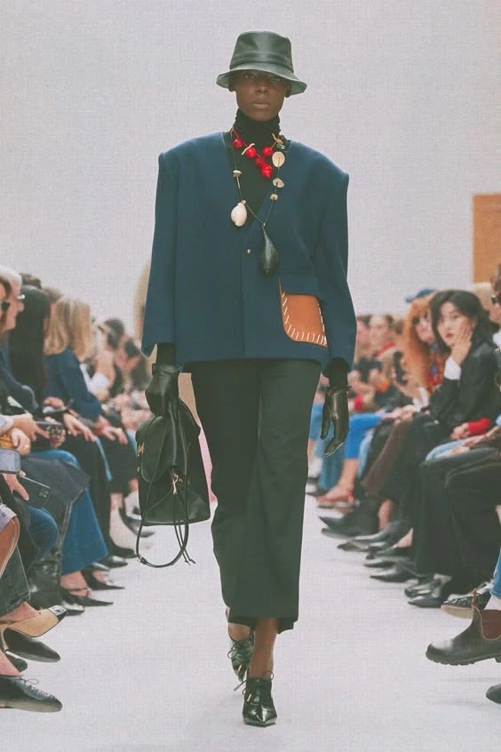 На показе можно было увидеть: атласные сапоги-чулки (пока они не так популярны, хотя не первый сезон с нами), шляпы-котелки и клоши, сумки-мешки, красные акценты (продолжают быть в трендах), крупные и акцентные украшения в одной зоне.