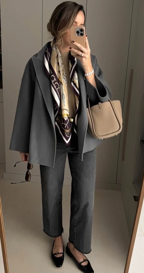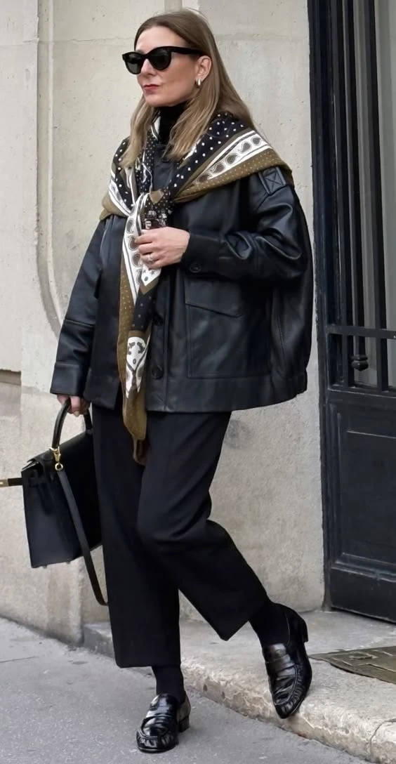 Если Вы любите простые и лаконичные образы в базовых оттенках и цветах, то чтобы не выглядеть пресно - добавьте платок!