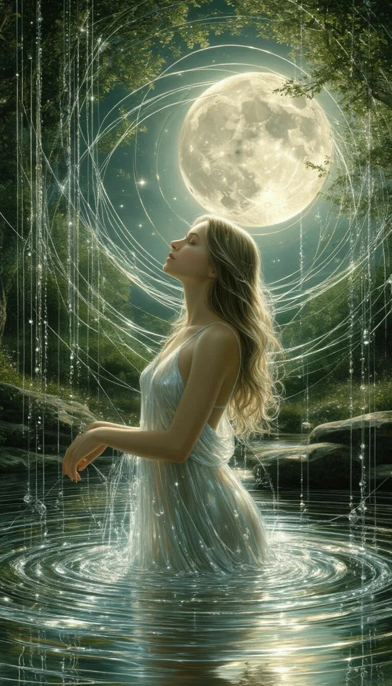 Представь, как вода отражает твои желания и мысли, балансируя их и унося лишнее.