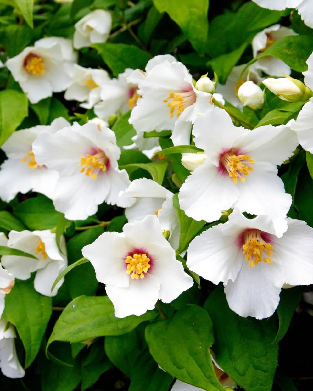 Жасмин (Чубушник) «Бель Этуаль» — это восхитительный кустарник с изысканными цветами и сладким вечерним ароматом. В июне кустарник наполняют многочисленные бутоны необычной звездчатой формы. Их основной цвет — белый, а в центре каждого соцветия присутствует нежно-земляничное пятнышко. Фишкой растения является уникальный земляничный аромат, интенсивно распростирающийся в вечернее время. Куст компактный, достигает 1,5-2 метров в высоту📝. Отлично поддается формировочной обрезке. Зимостойкость до -23°C.
