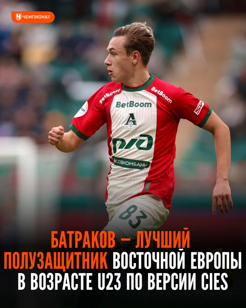 🔝 Батраков — лучший полузащитник Восточной Европы среди игроков до 23 лет