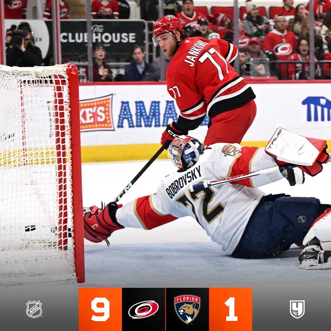 😱 Бобровский пропустил 9 шайб. После встречи с Трампом «Флорида» разгромно проиграла «Каролине»