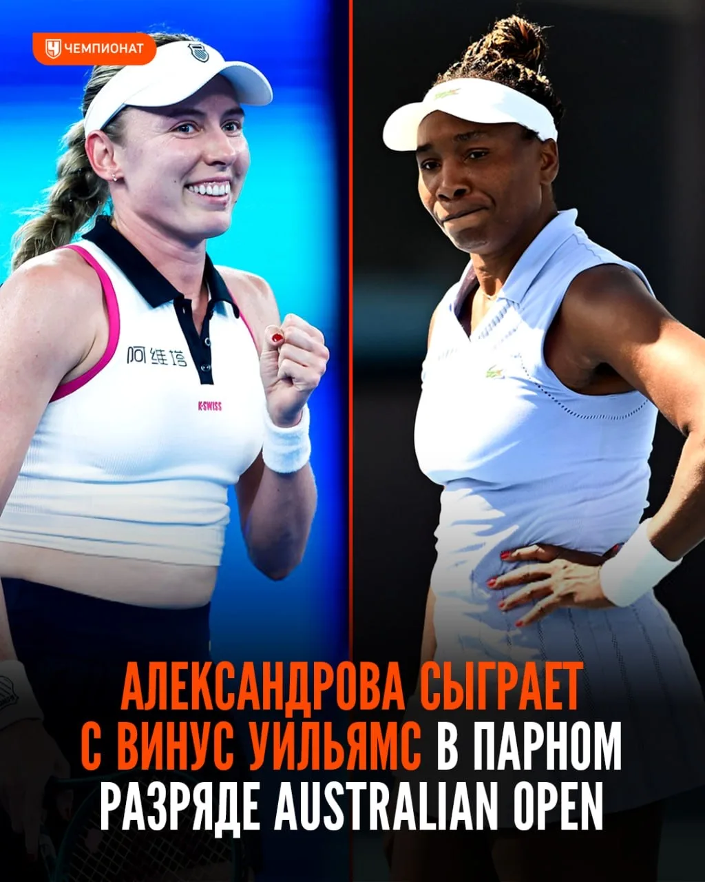 🤯🎾 Александрова сыграет в паре с 45-летней Винус Уильямс на Australian Open