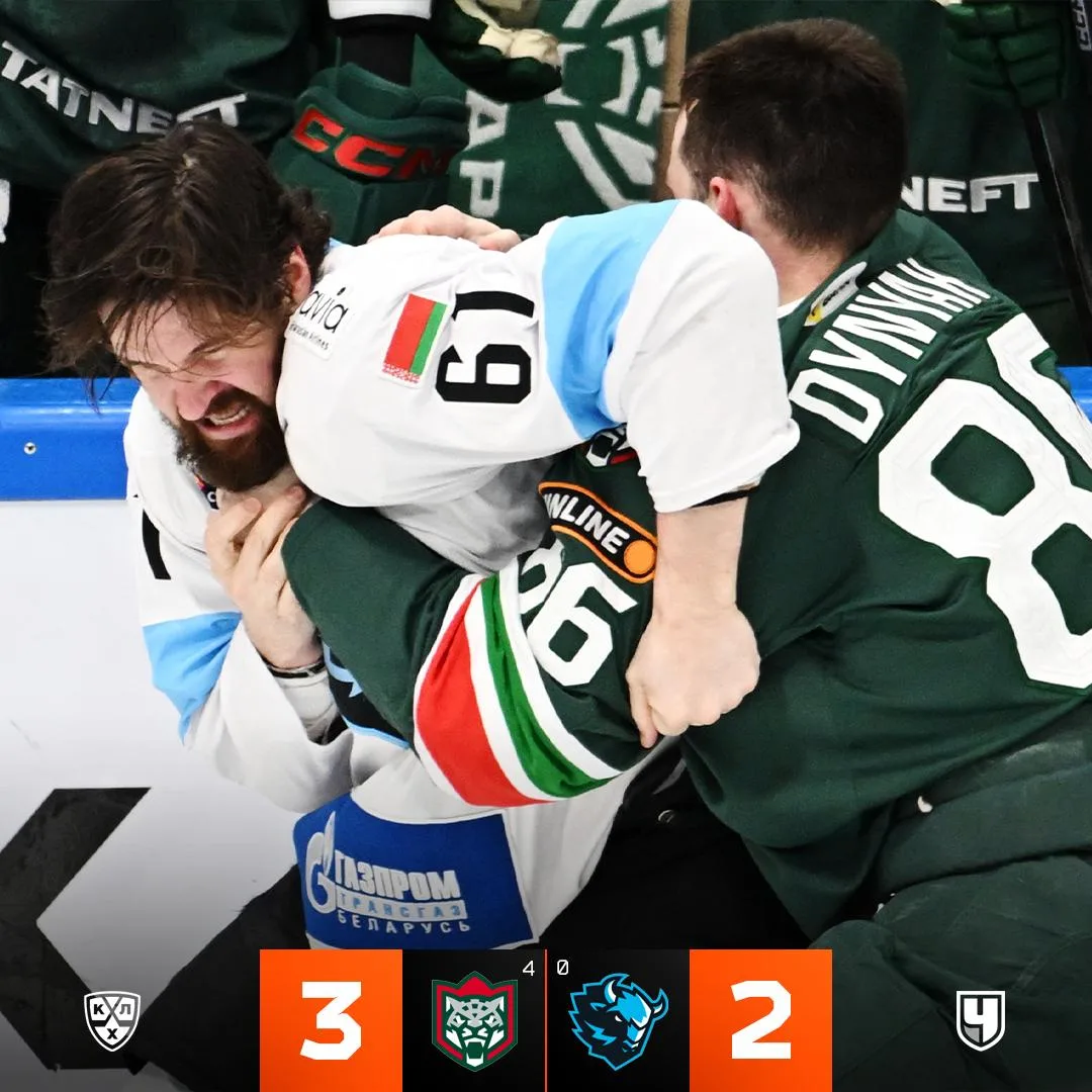 👊 После драк в начале матча пошли и голы: всего казанцы забросили три шайбы, а минчане — четыре. Однако два гола Пинчука были отменены после челленджей тренера