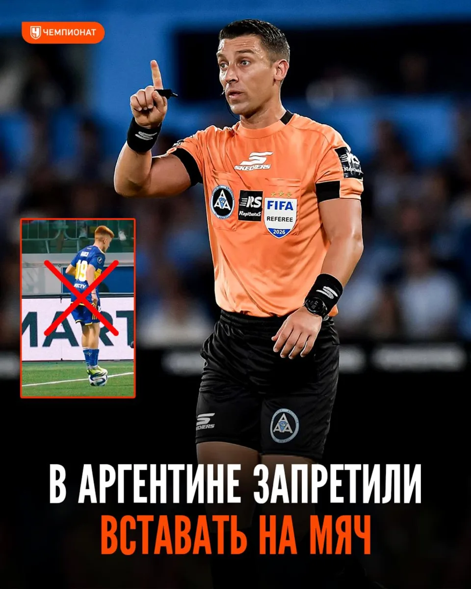 В аргентинском футболе запретили вставать на мяч. Теперь за это будут наказывать жёлтой карточкой и свободным ударом ❌