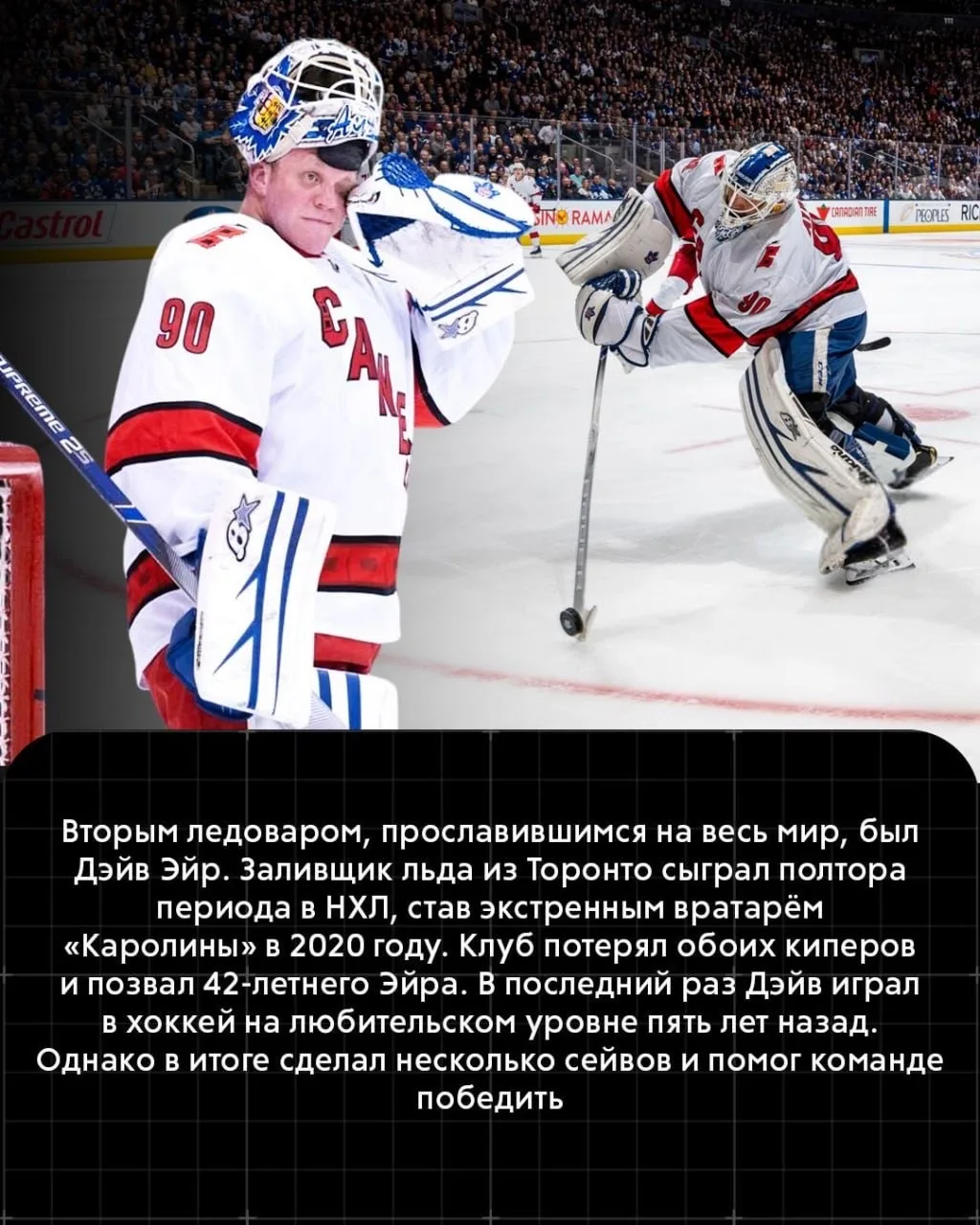 А однажды ледовар дебютировал в НХЛ в 42 года — и даже победил. Все подробности — в наших карточках 📋