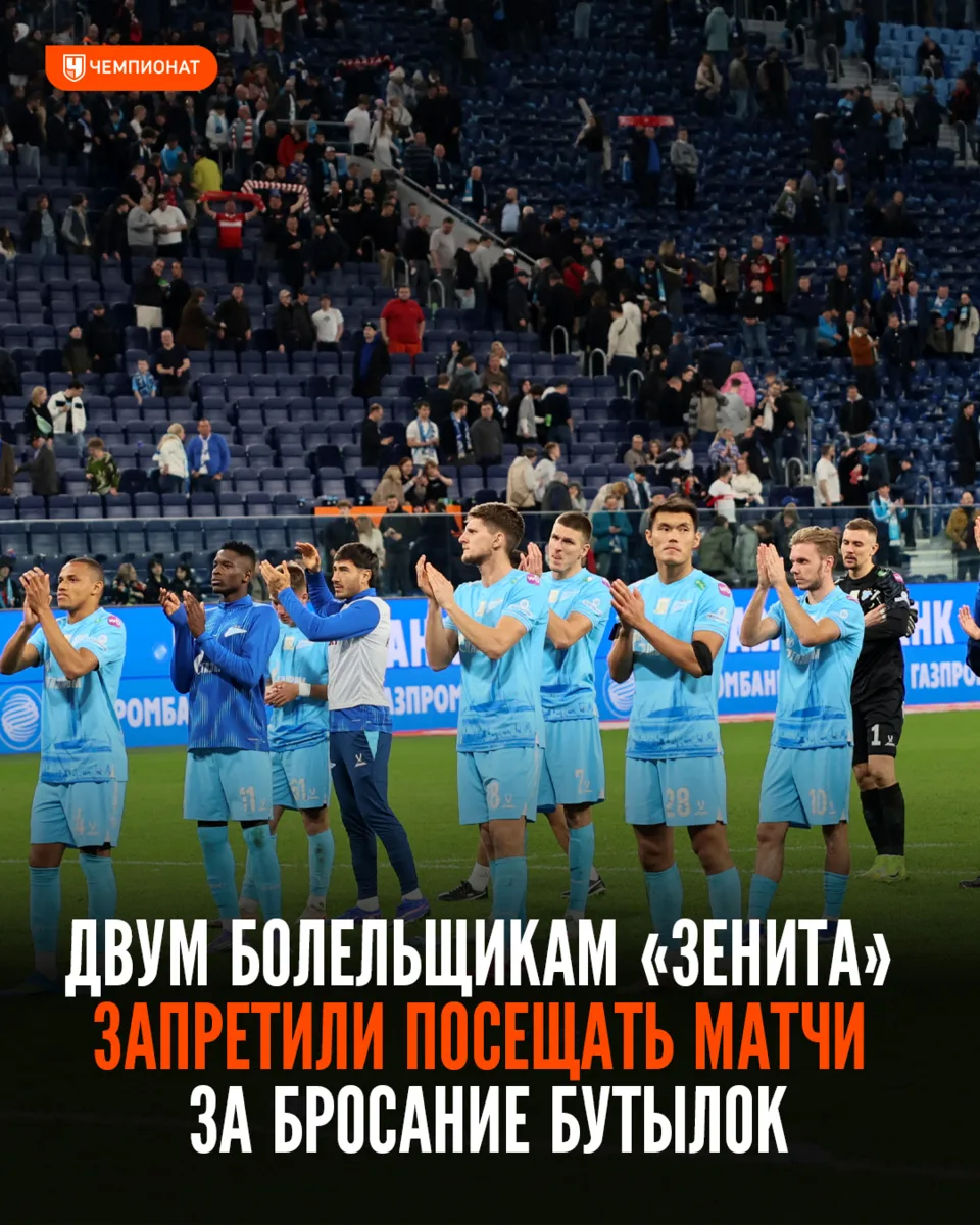 Двум болельщикам запретили посещать матчи за бросание бутылок на кубковой игре «Зенит» — «Спартак» ❌