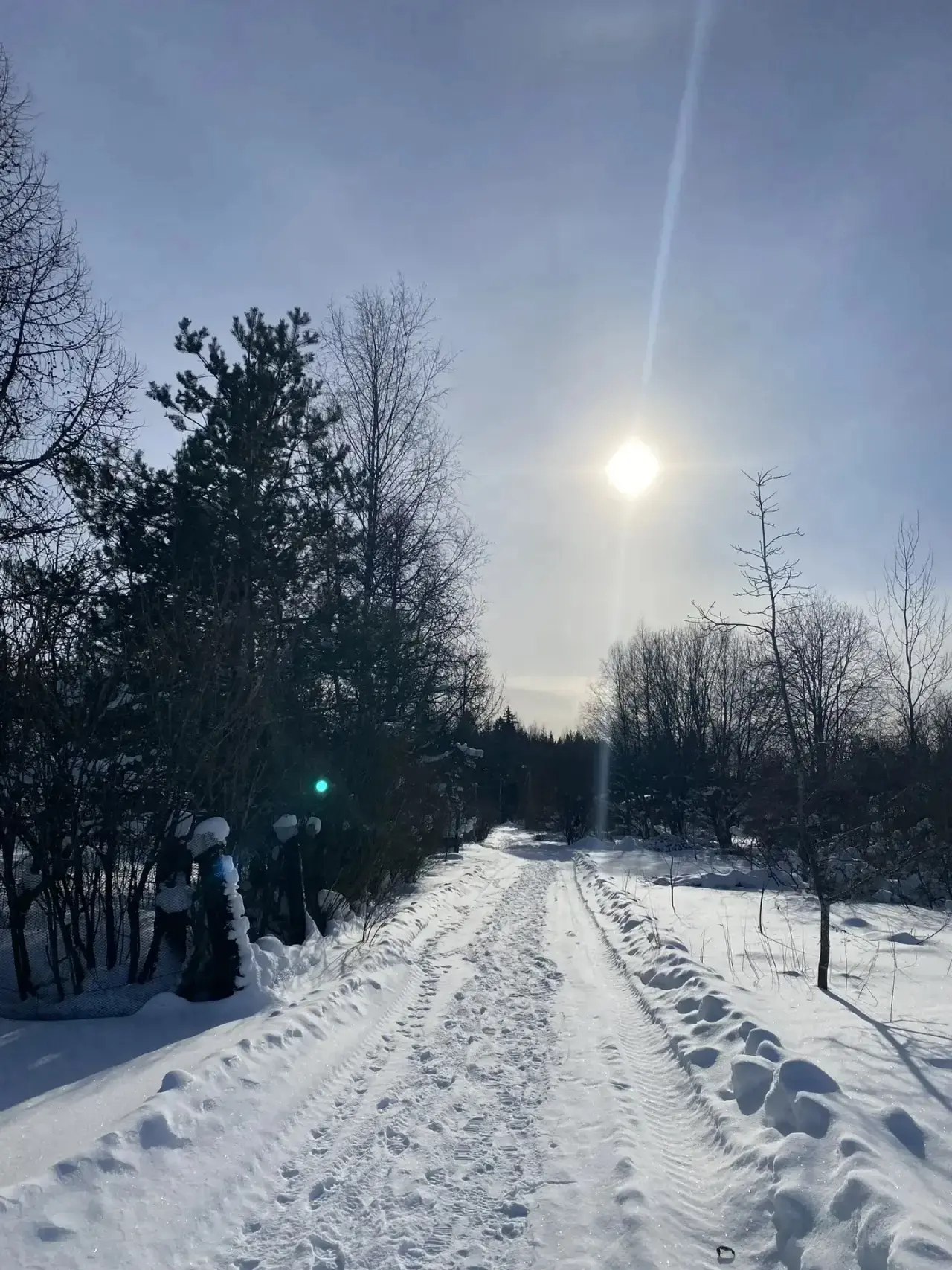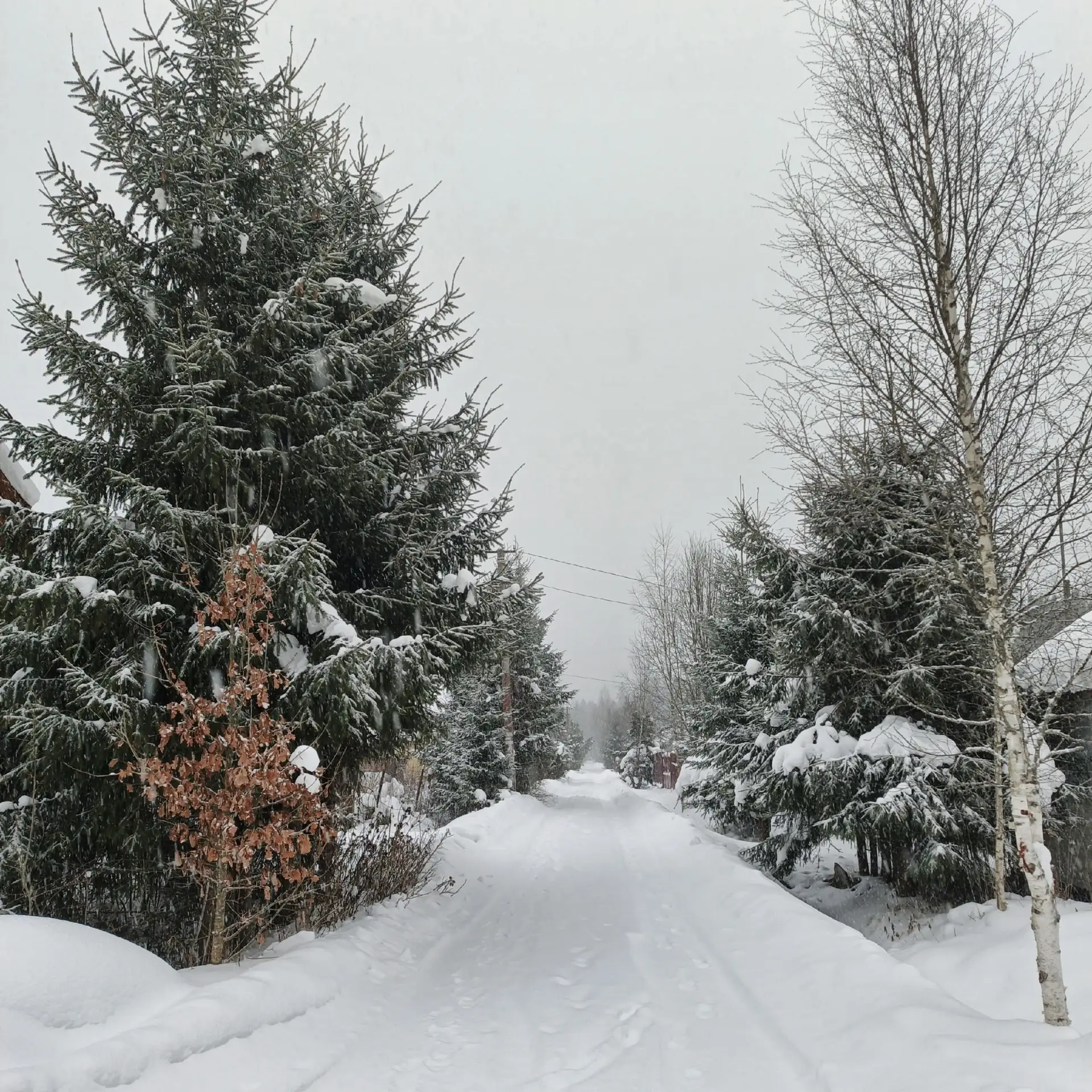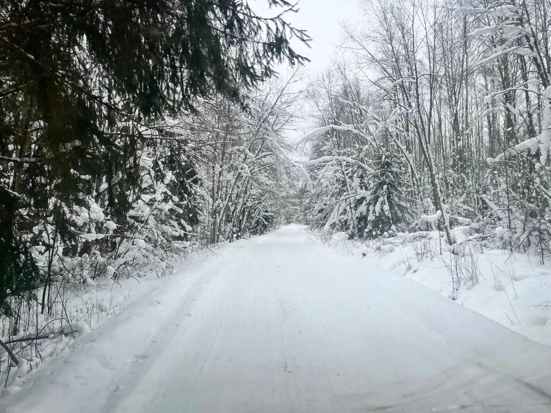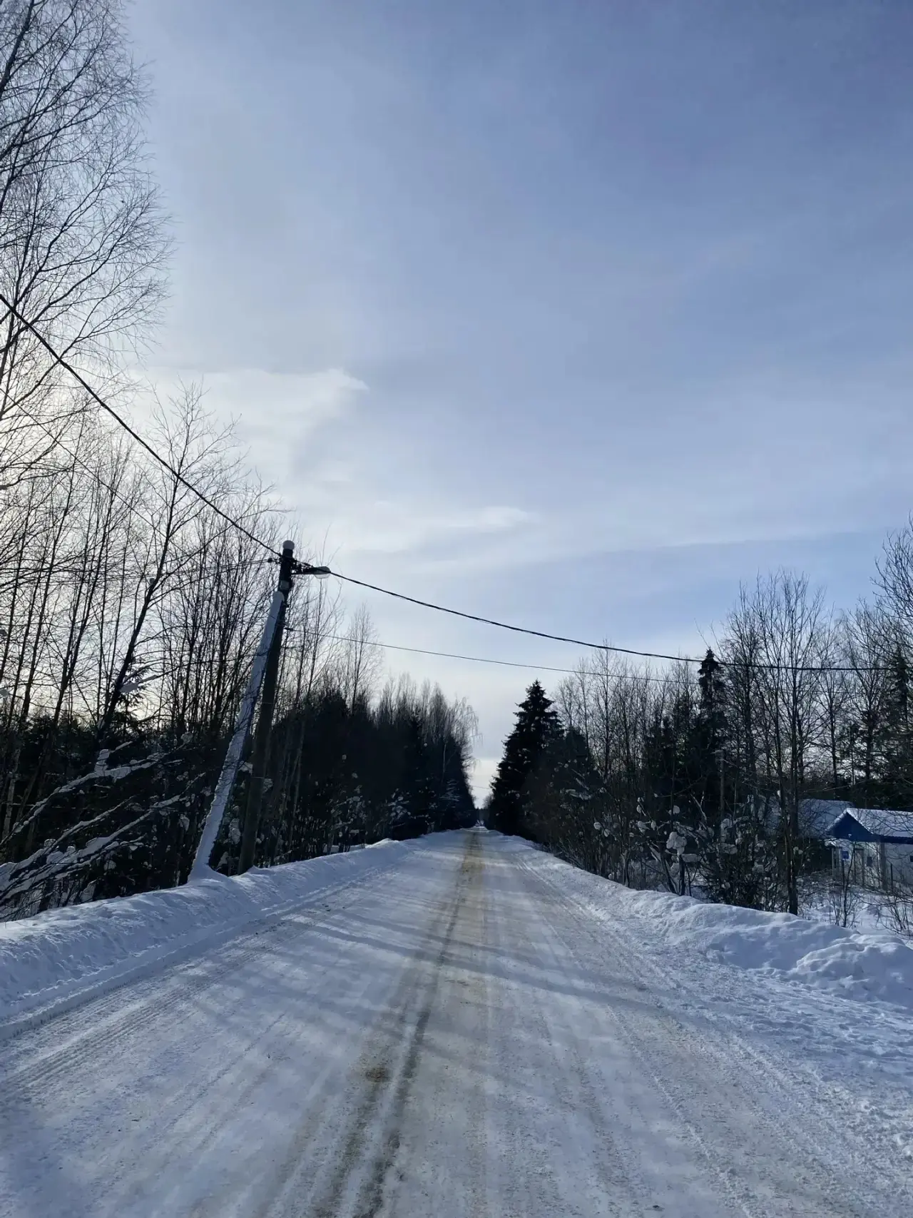 Погода шикарная! Иногда только налетает холодный ветерок. Дорога в поселке Чаща почищена и посыпана песочком.