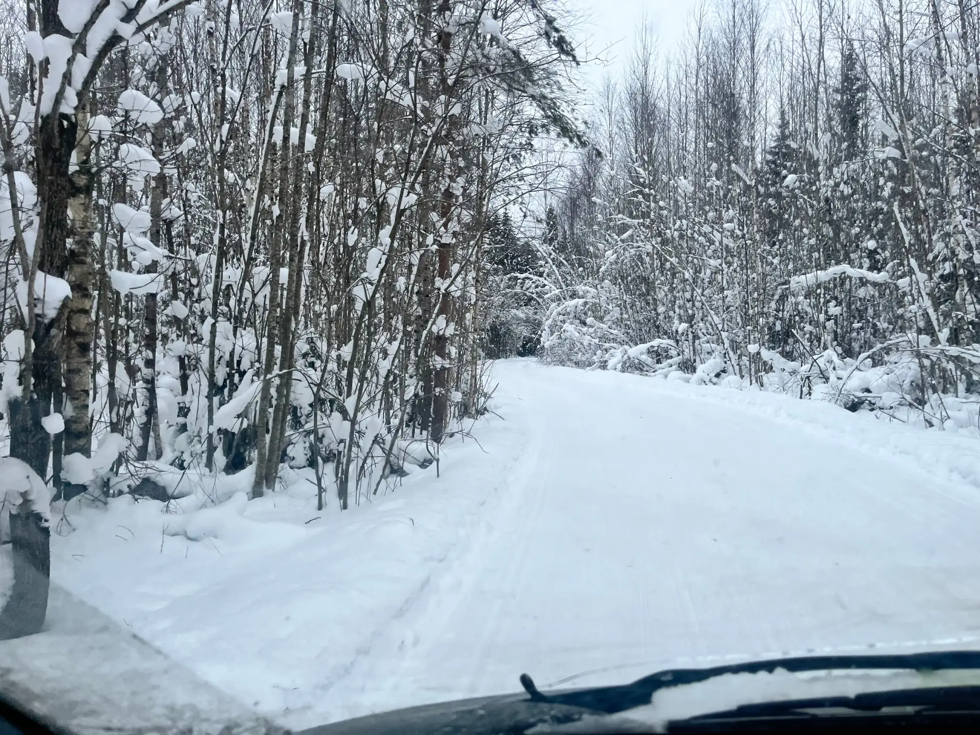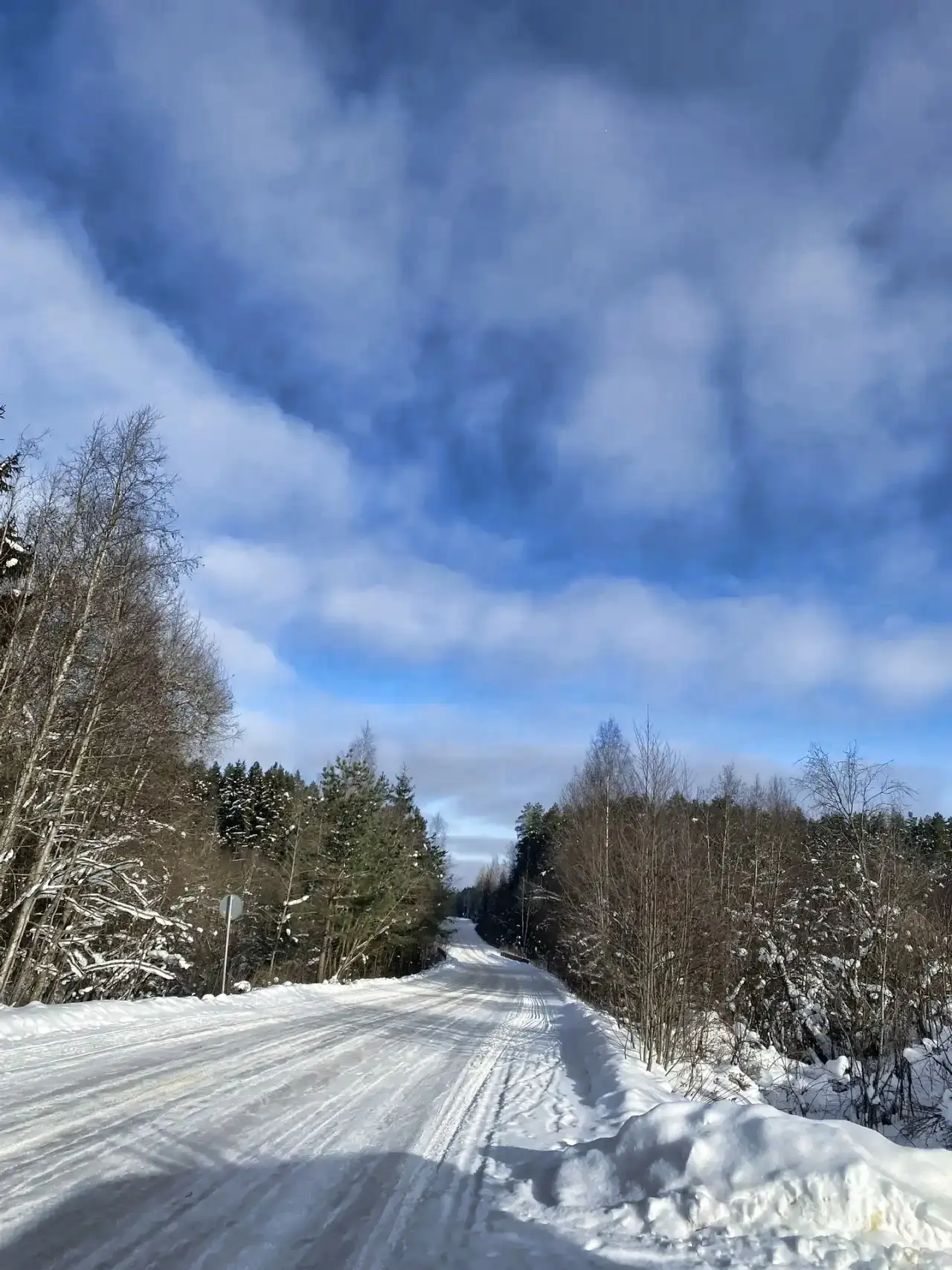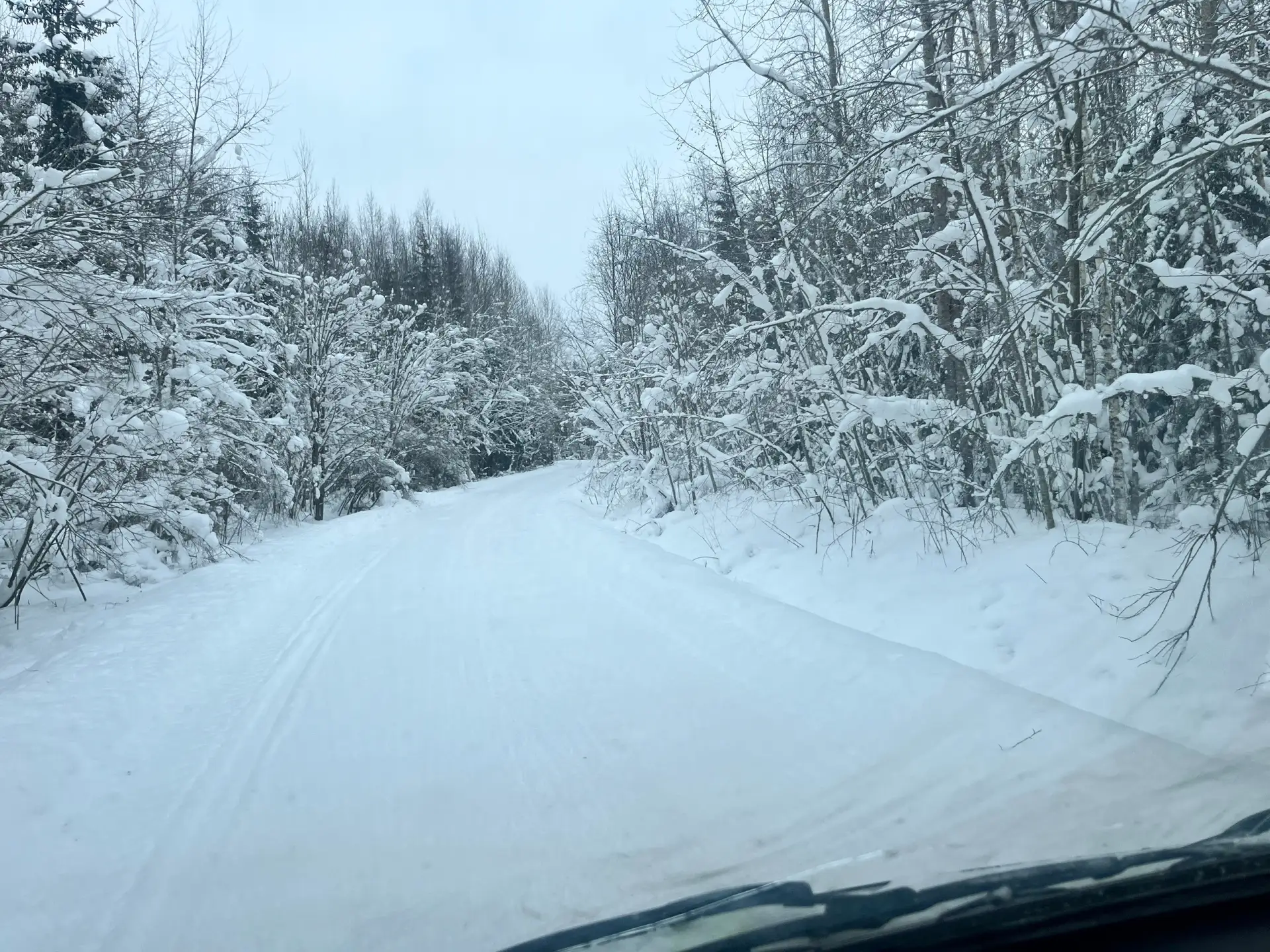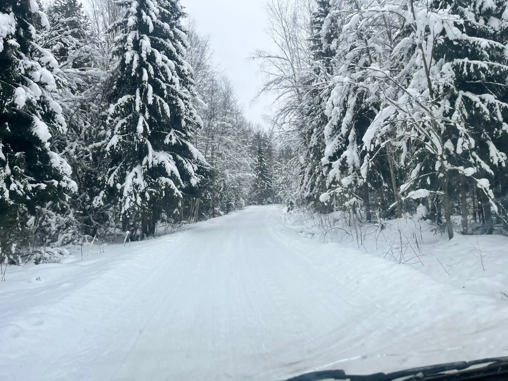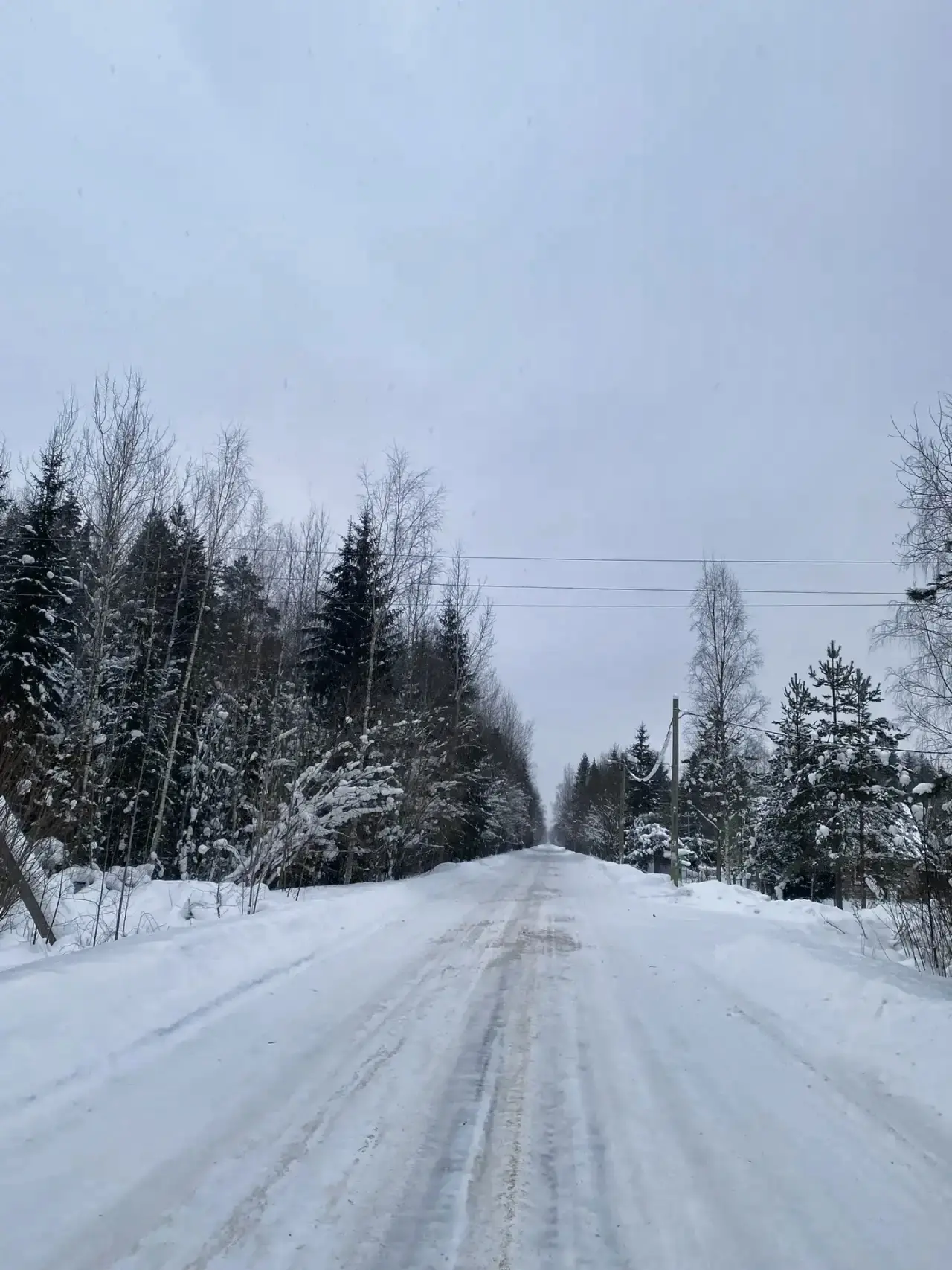 Погода шикарная! Иногда только налетает холодный ветерок. Дорога в поселке Чаща почищена и посыпана песочком.