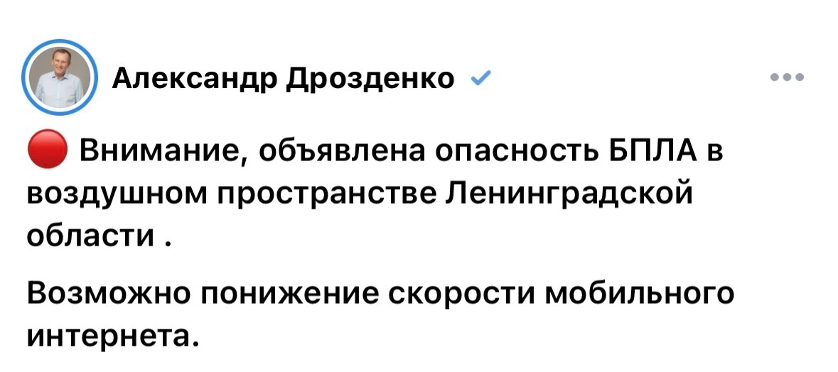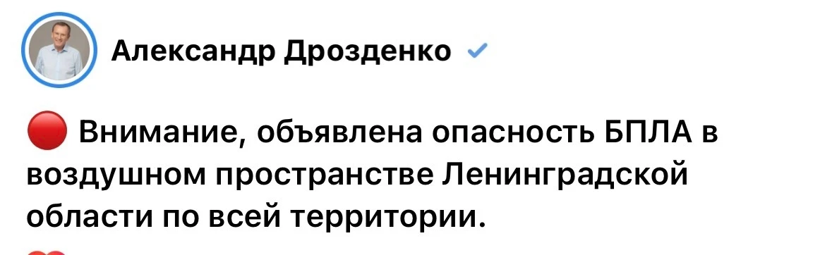 Внимание! Опасность бплa в ЛО.