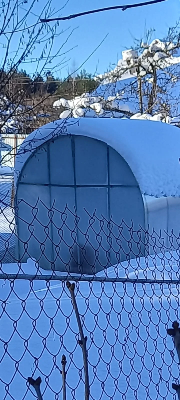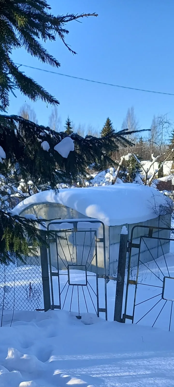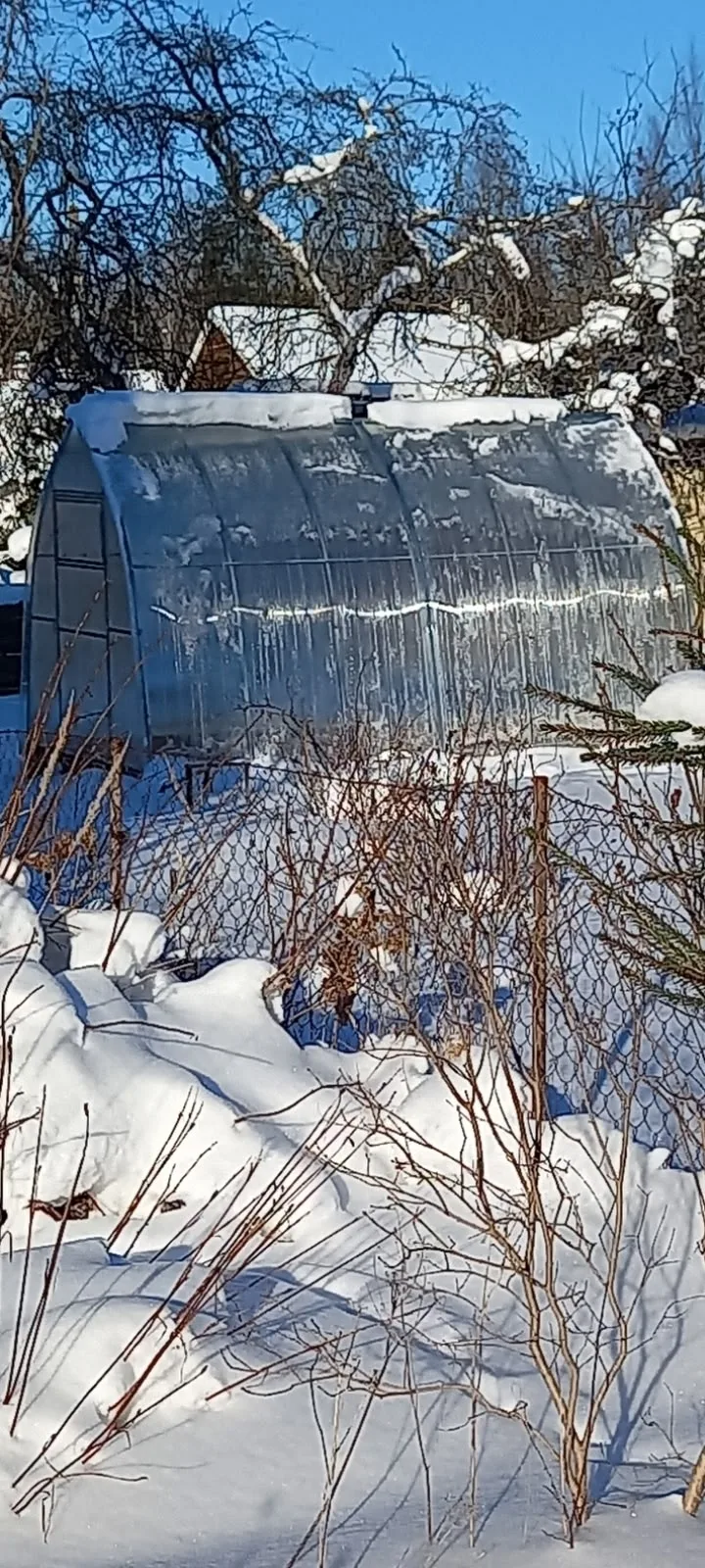 Фото теплиц в Чаще❄️. Сломанных не видели. Солнышко уже немного пригревает, и с некоторых парников снег сходит. ☀️