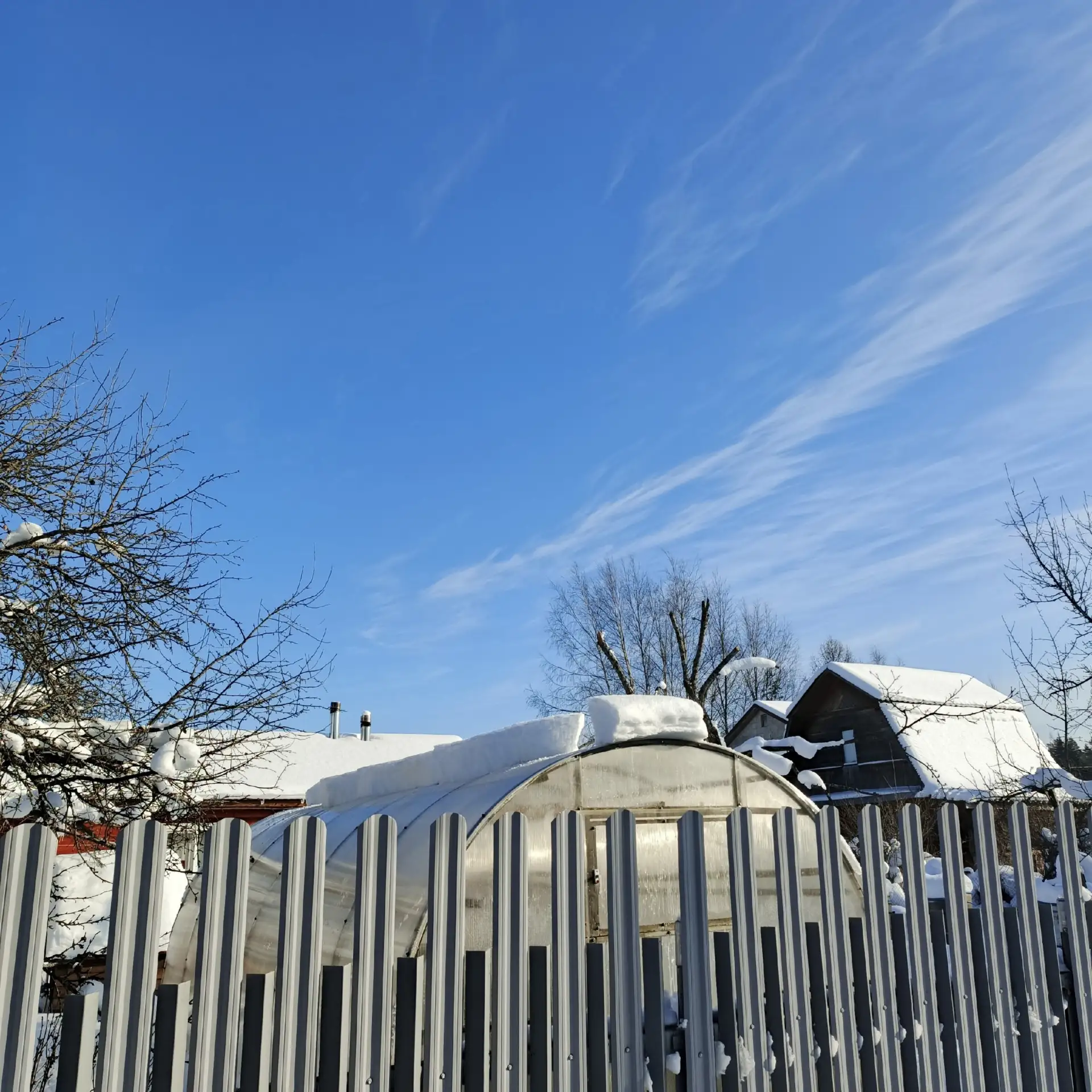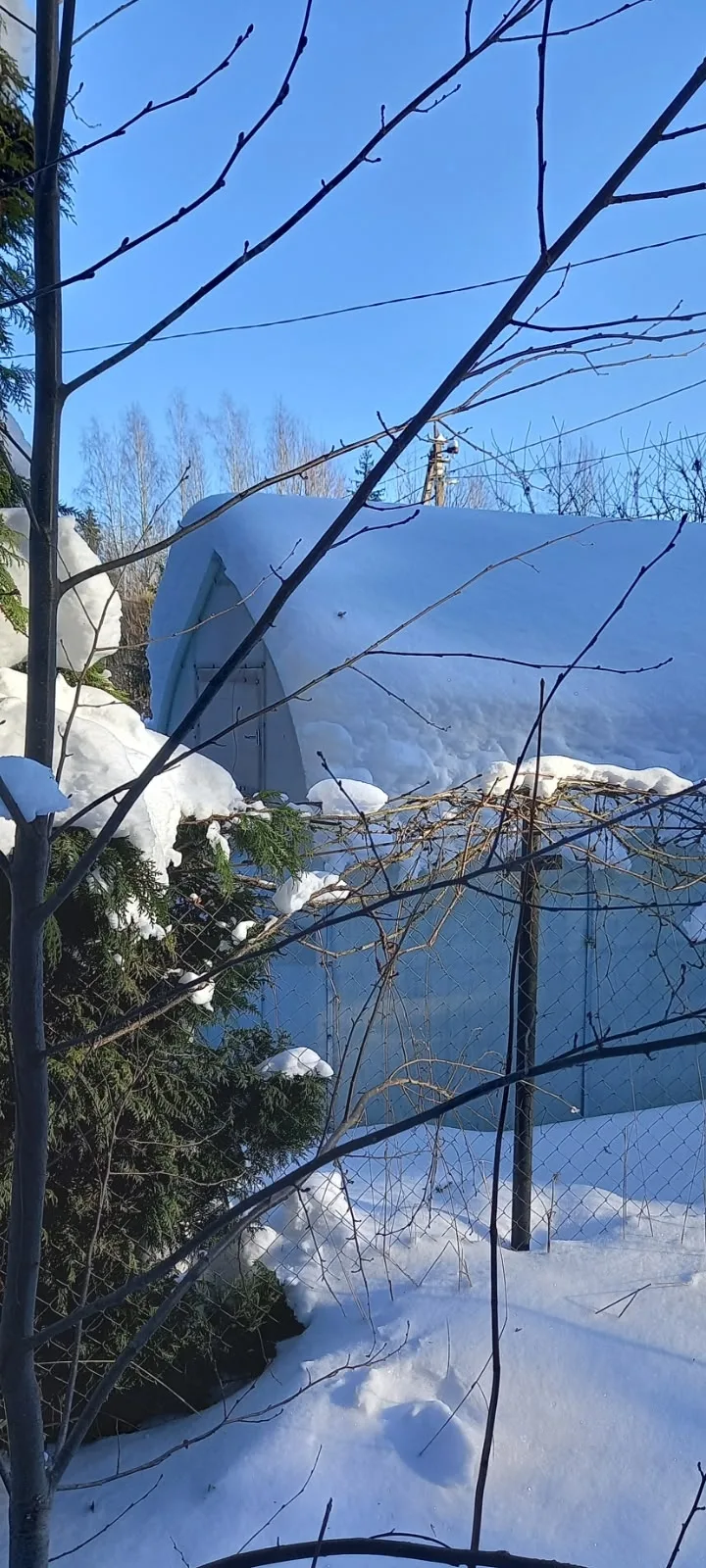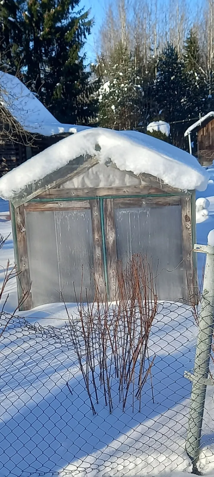 Фото теплиц в Чаще❄️. Сломанных не видели. Солнышко уже немного пригревает, и с некоторых парников снег сходит. ☀️