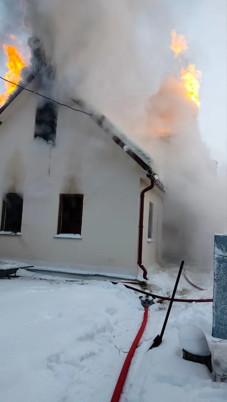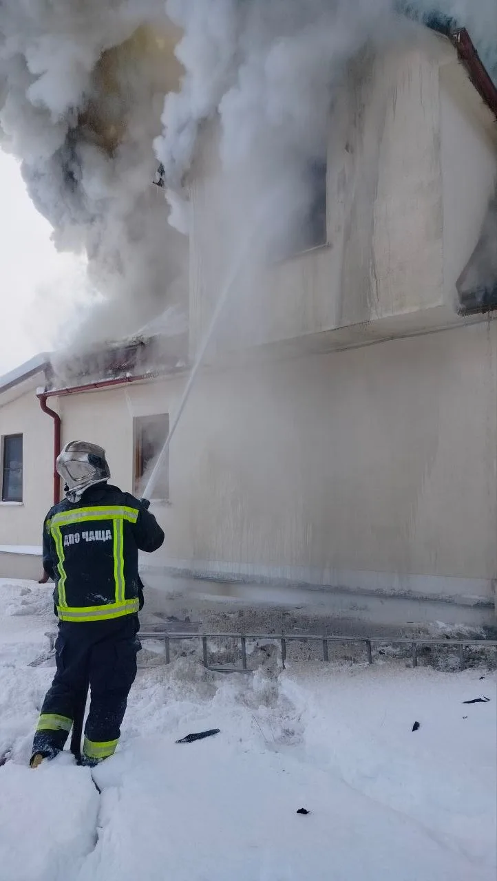 18.02.26 в 08:40 ч. утра поступил вызов в ДПО Чаща о пожаре в пос.Чаща на ул. Речная. По прибытию караула ДПО обнаружено внутреннее горение бетонного дома по всей площади.