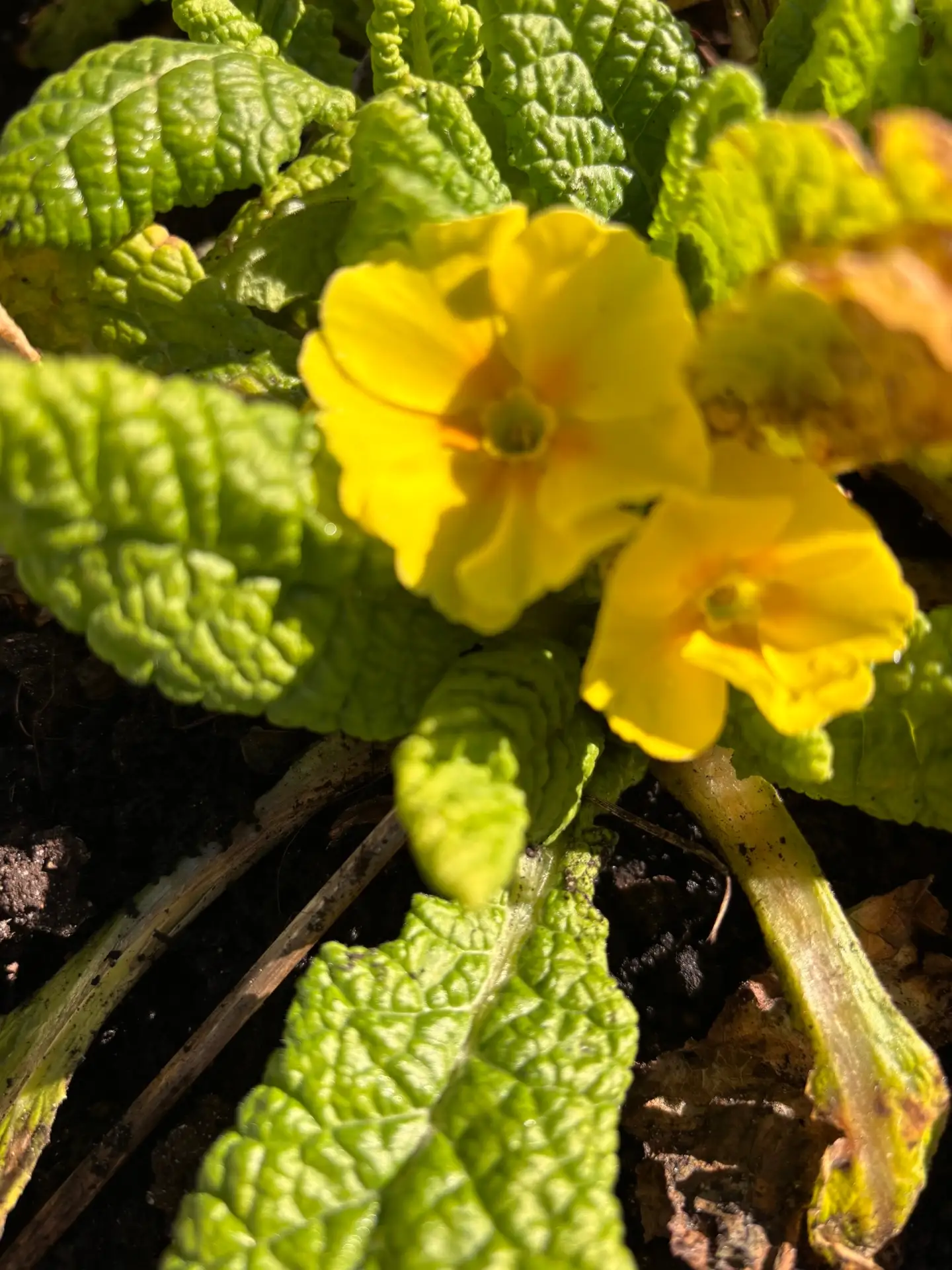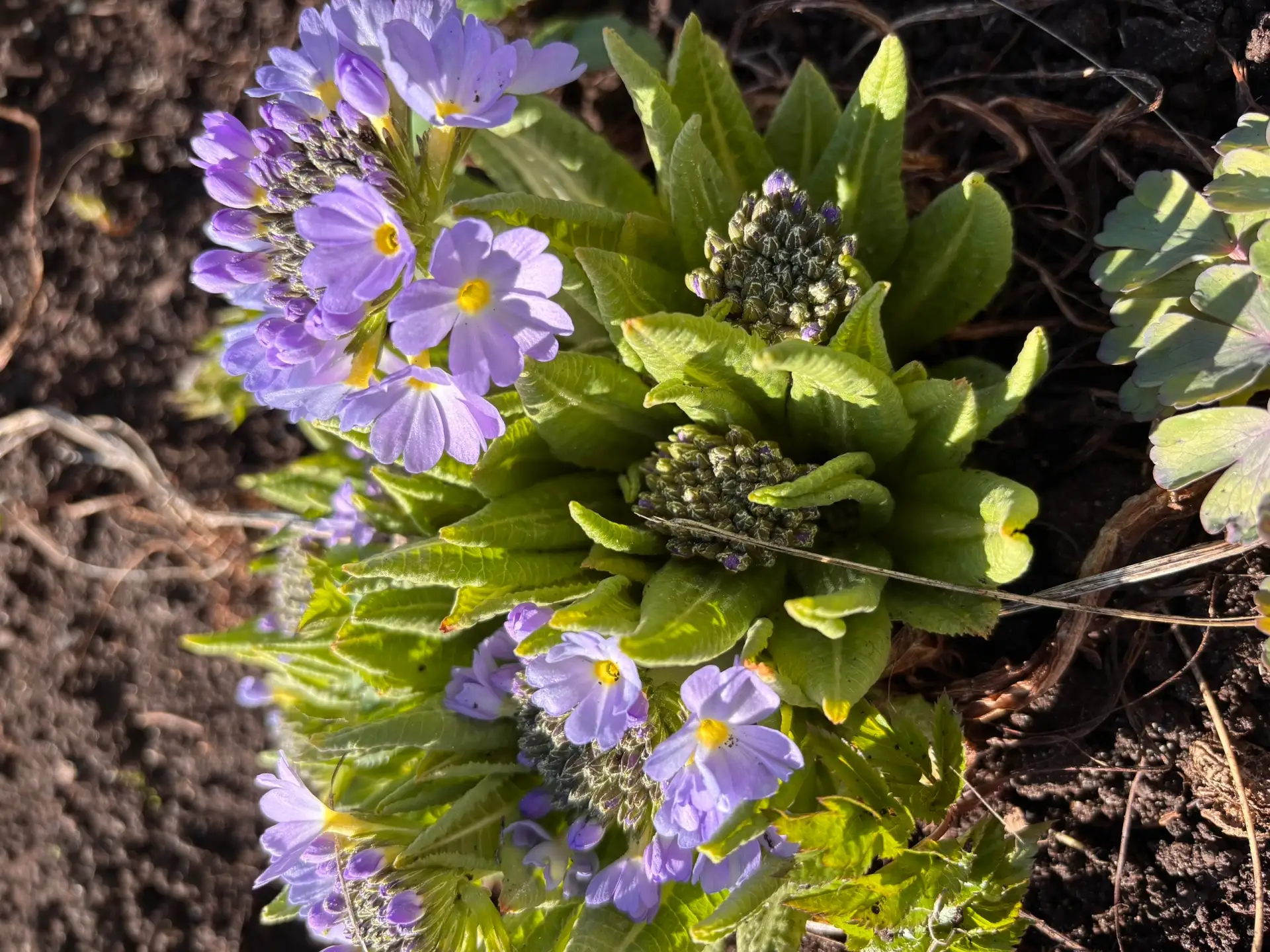 На смену крокусам приходят пока еще робко примулы.