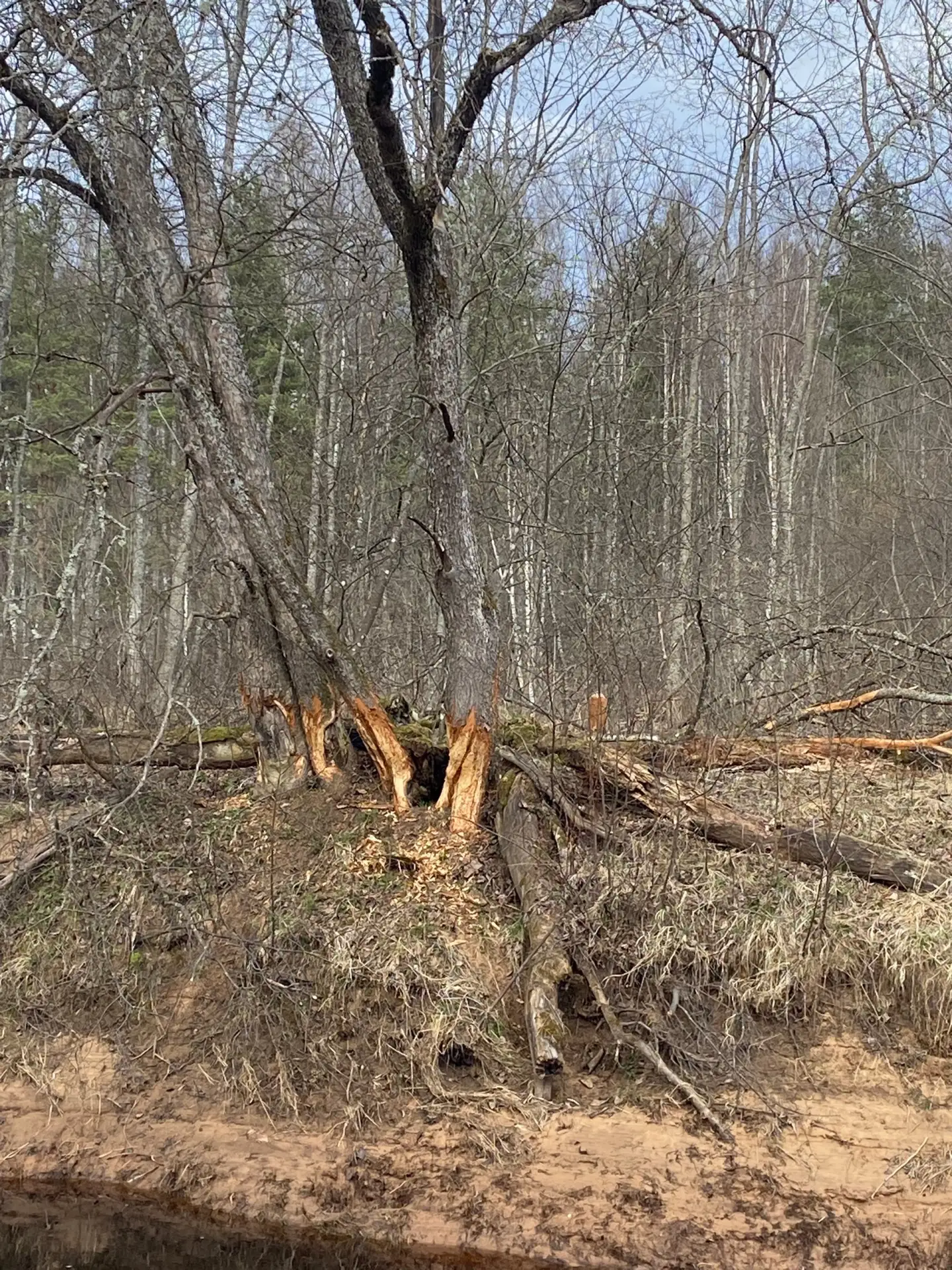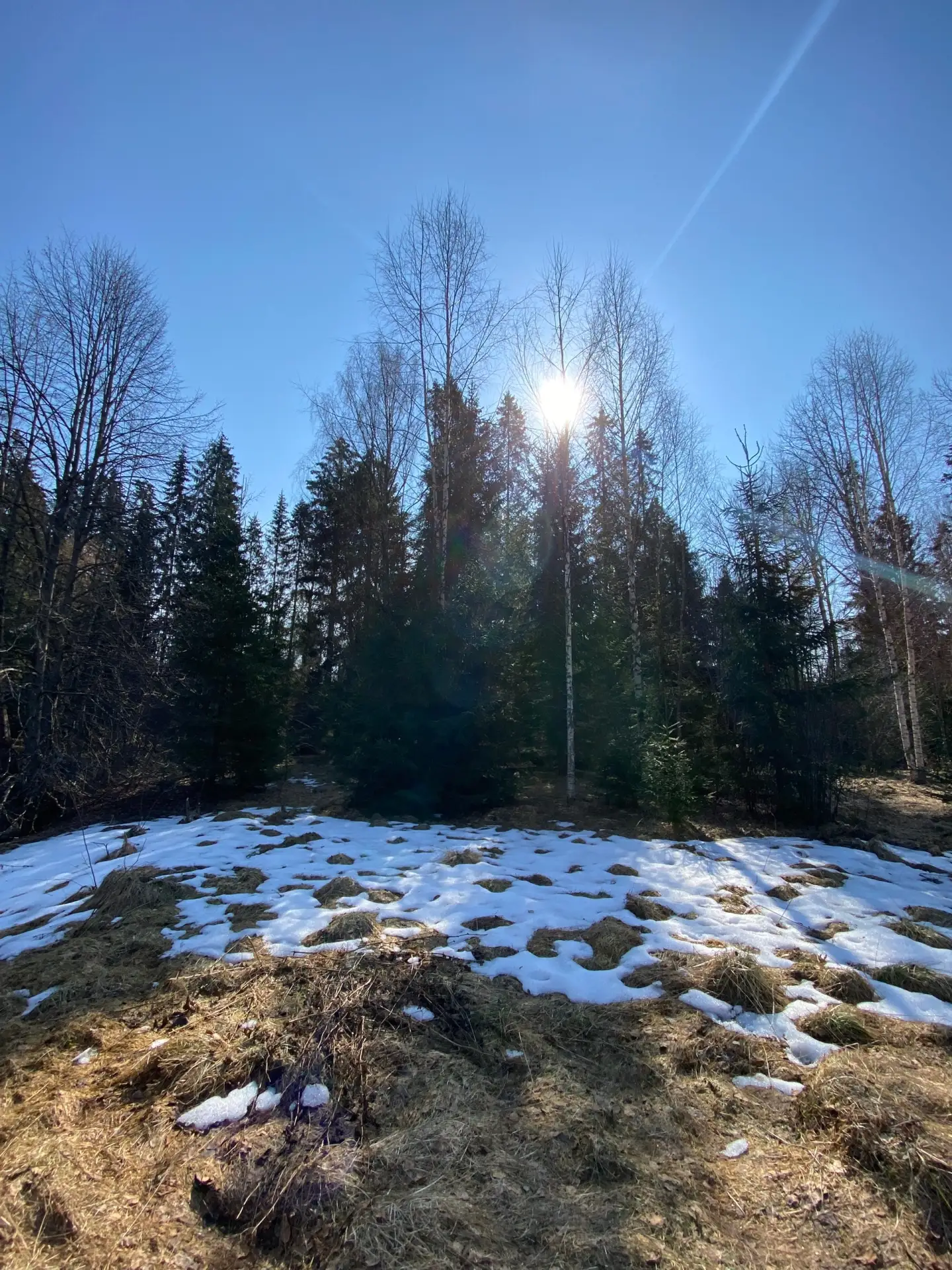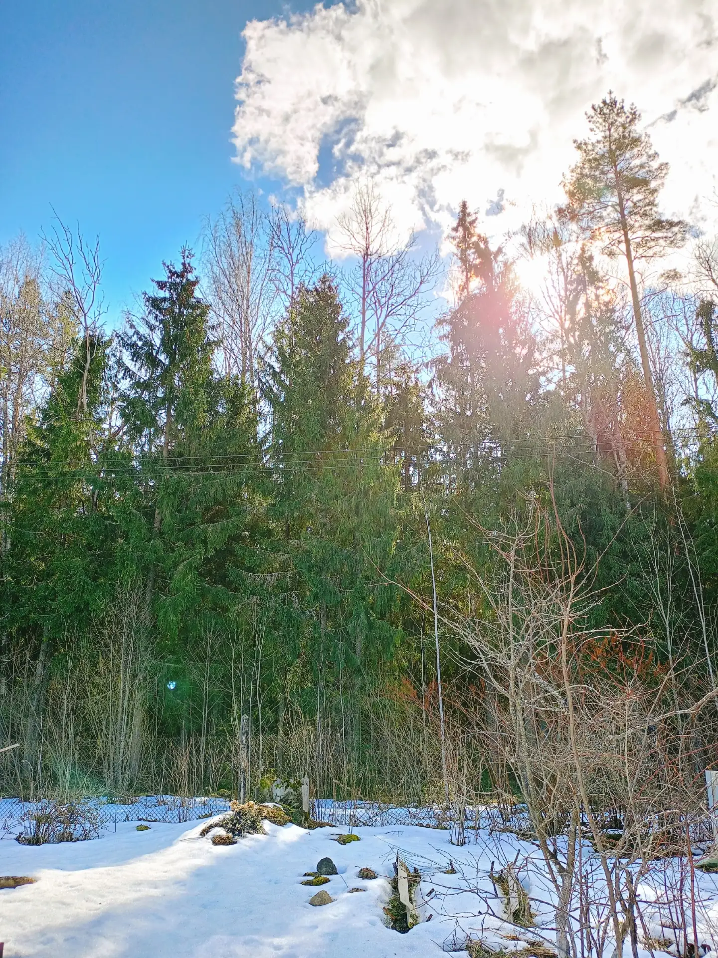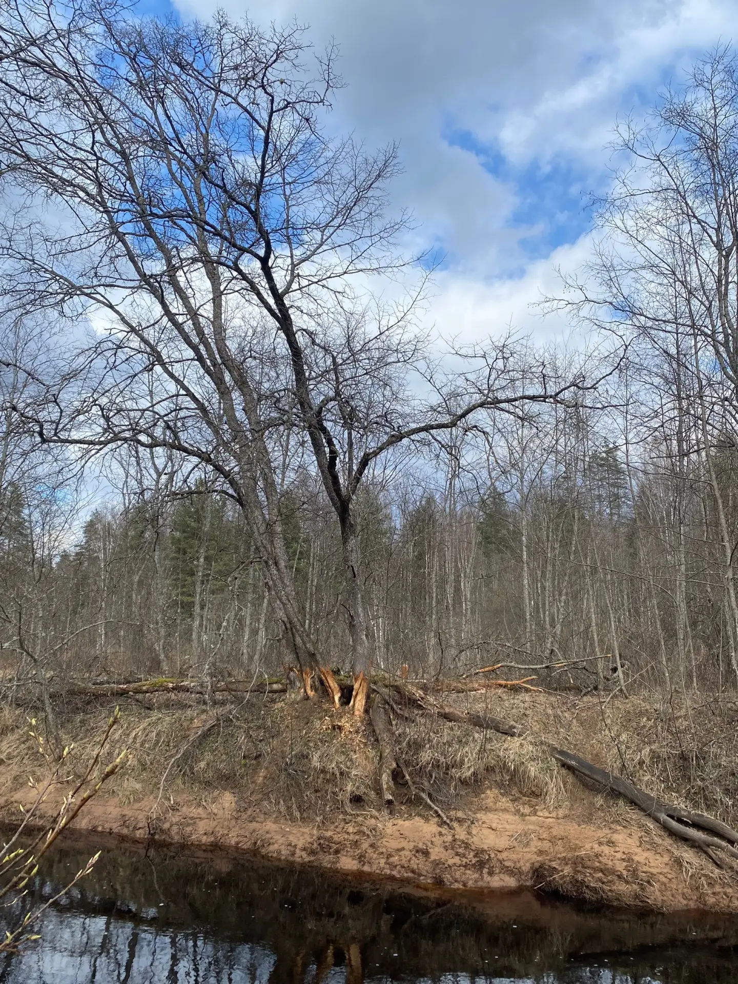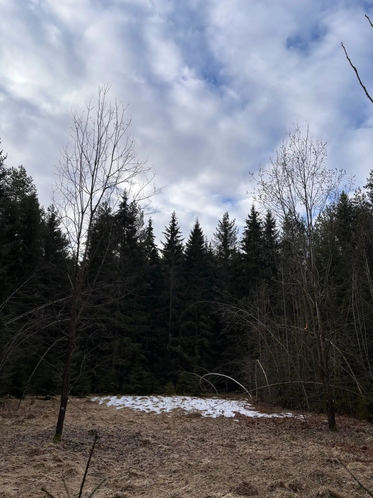 В Чаще чуть ниже нуля градусов по Цельсию. Кое-где на полянах в лесу до сих пор лежит снег. Облачно. Временами выглядывает солнце.