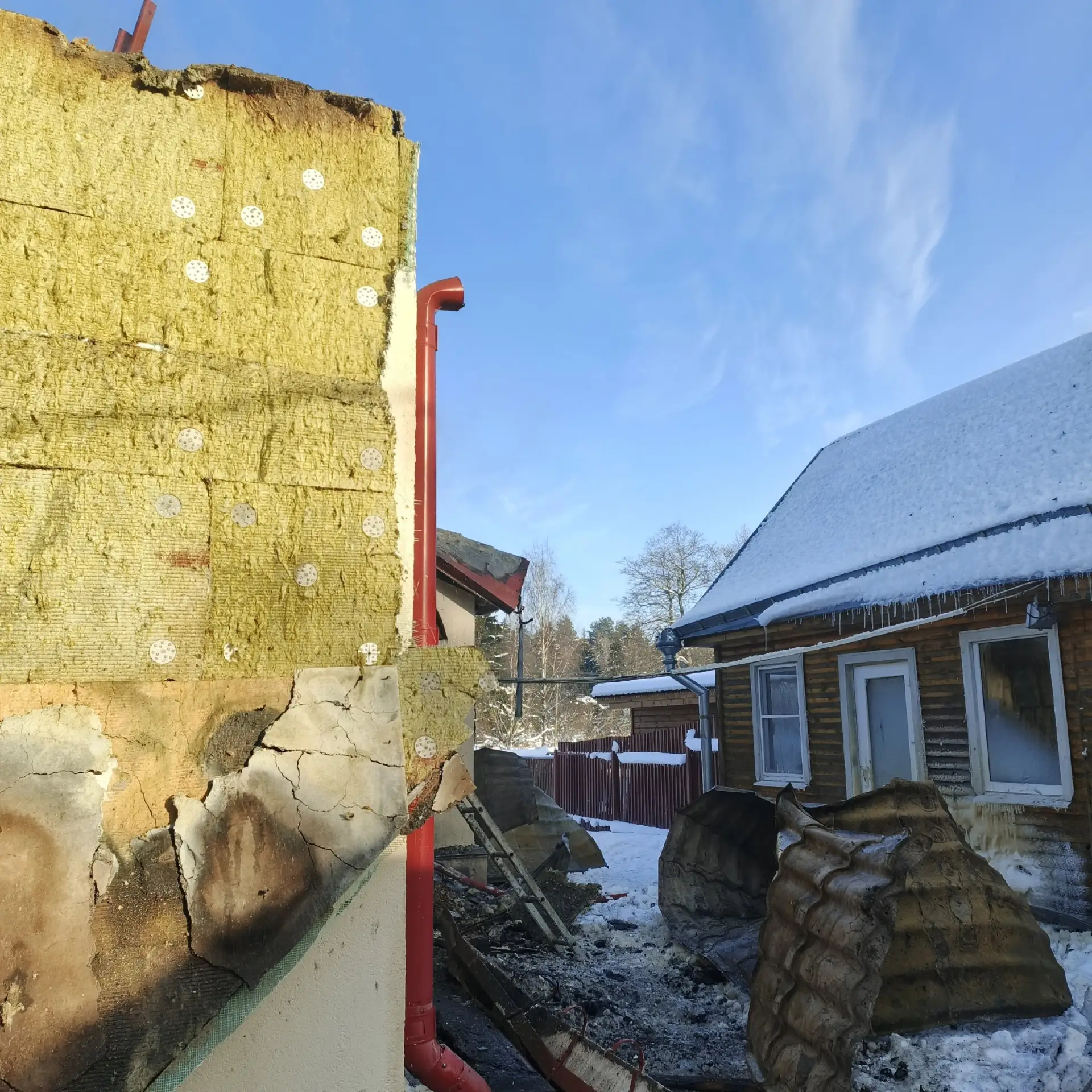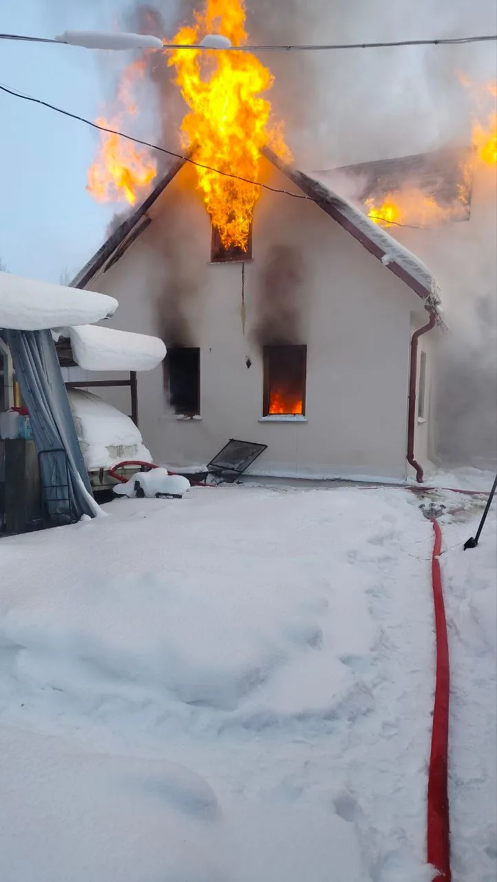 Как я увидела, горящий дом был деревянный, хотя и утеплен снаружи и оштукатурен. И, именно поэтому его изнутри пришлось проливать огромным количеством воды, чтобы вновь не разгорелся.