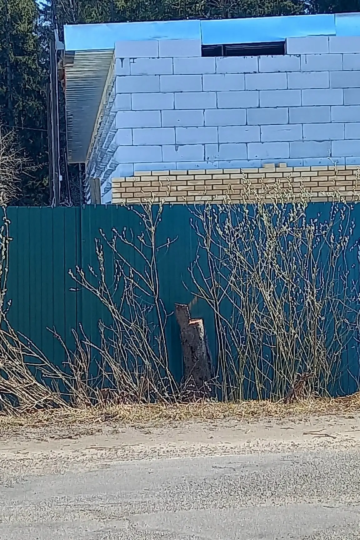 А вот вы не спрашиваете, а у нас тут уже бежевыми декоративными кирпичиками украшают здание, вероятно, будущего сетевого магазина в посёлке Чаща.