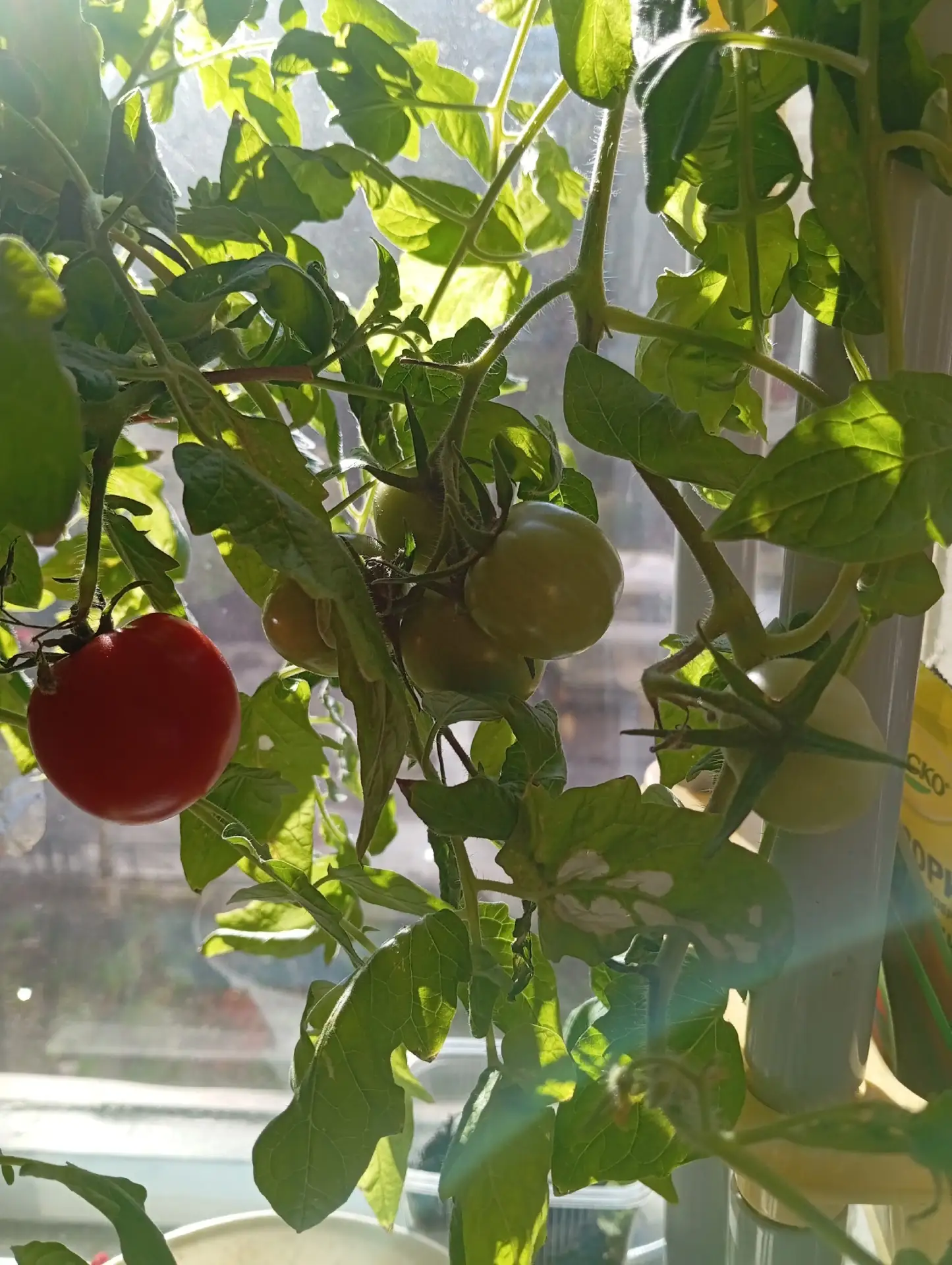 Зацвел на окне, к новому году созрели четыре небольших помидорки.