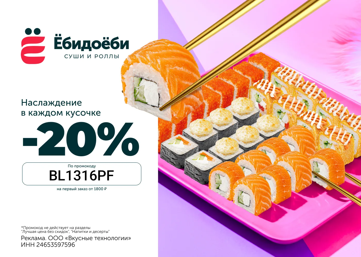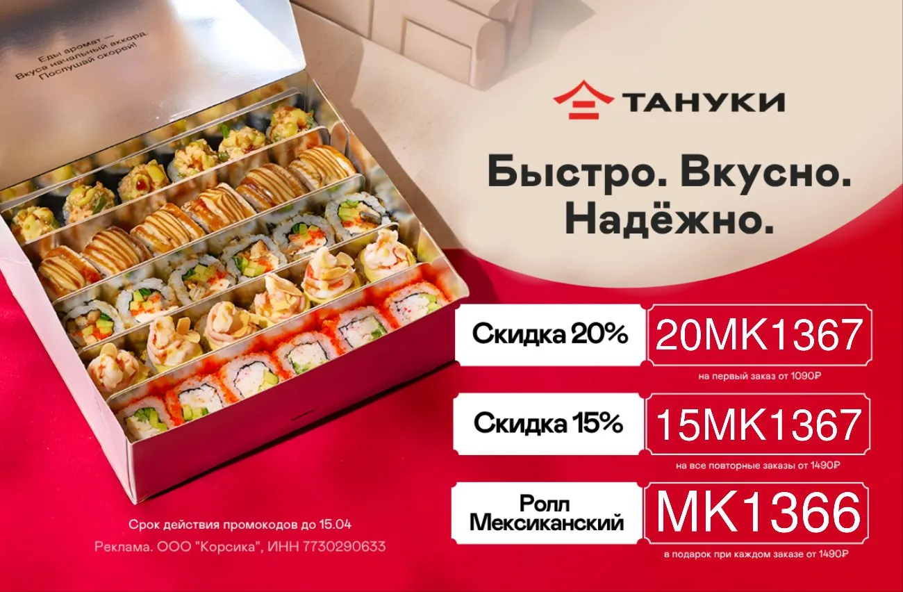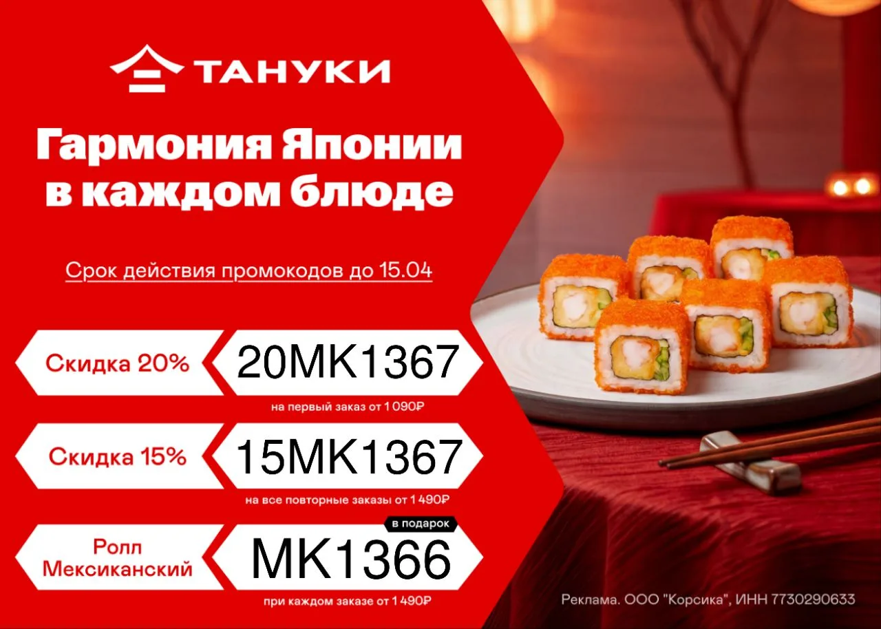 🍣 20MK1367 – скидка 20% на первый заказ от 1 090 ₽;
