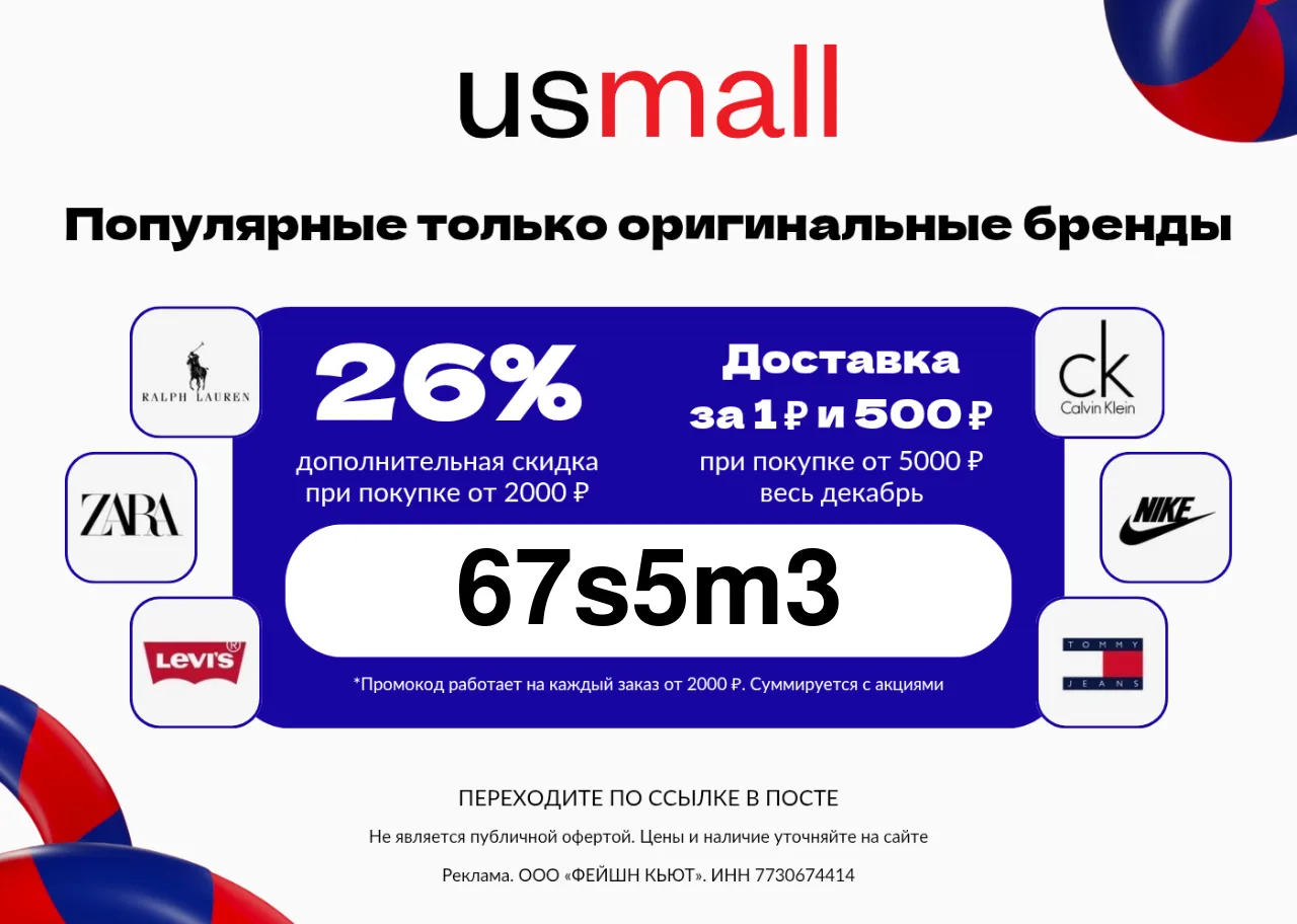 USmall 👈 маркетплейс американских магазинов в России. Одежда, обувь и товары с IHerb со скидками до 80%. До конца ноября -50% на доставку + промокод в Usmall