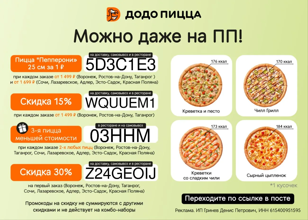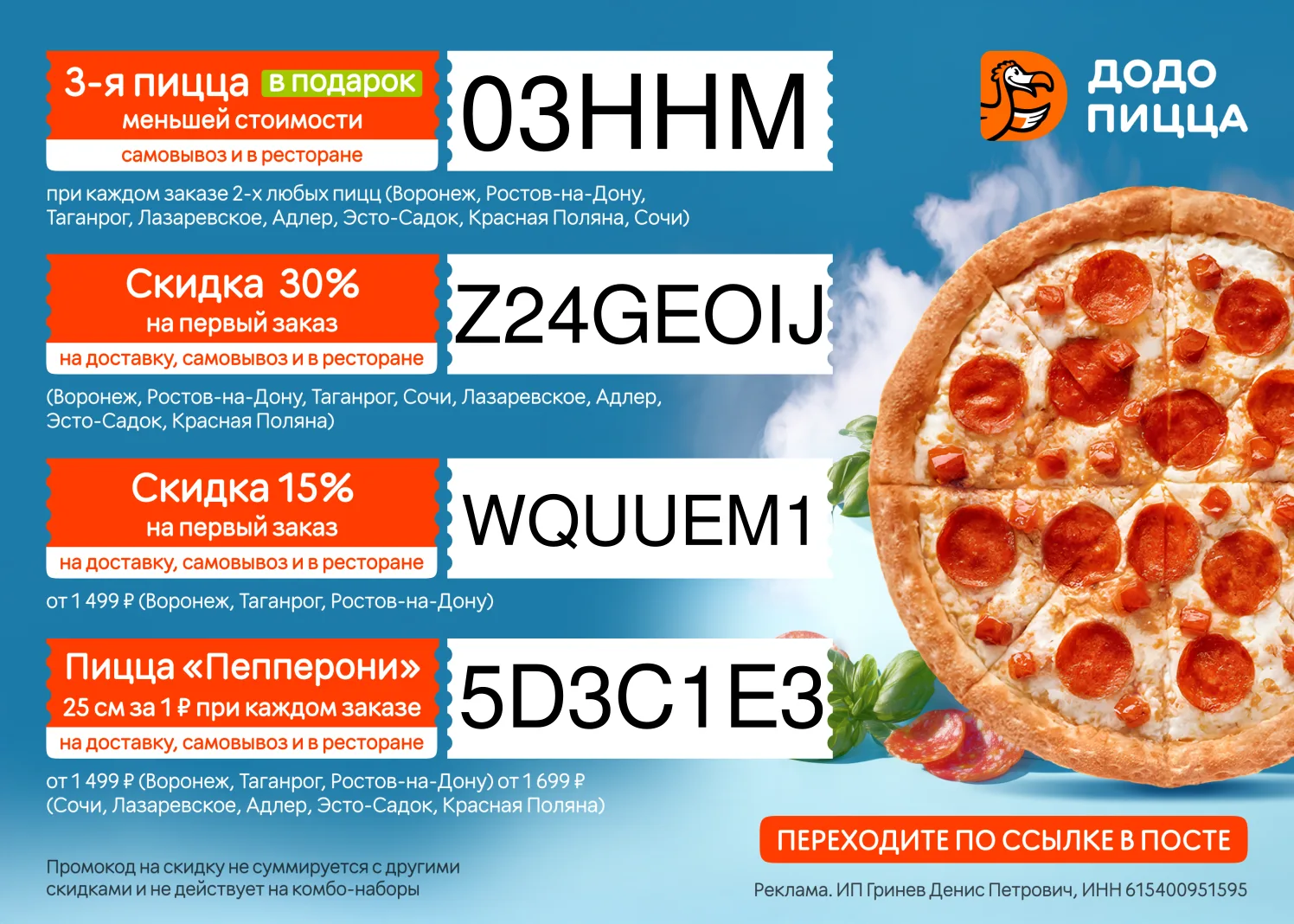 Актуальные промокоды на заказ в Додо Пицце 👈