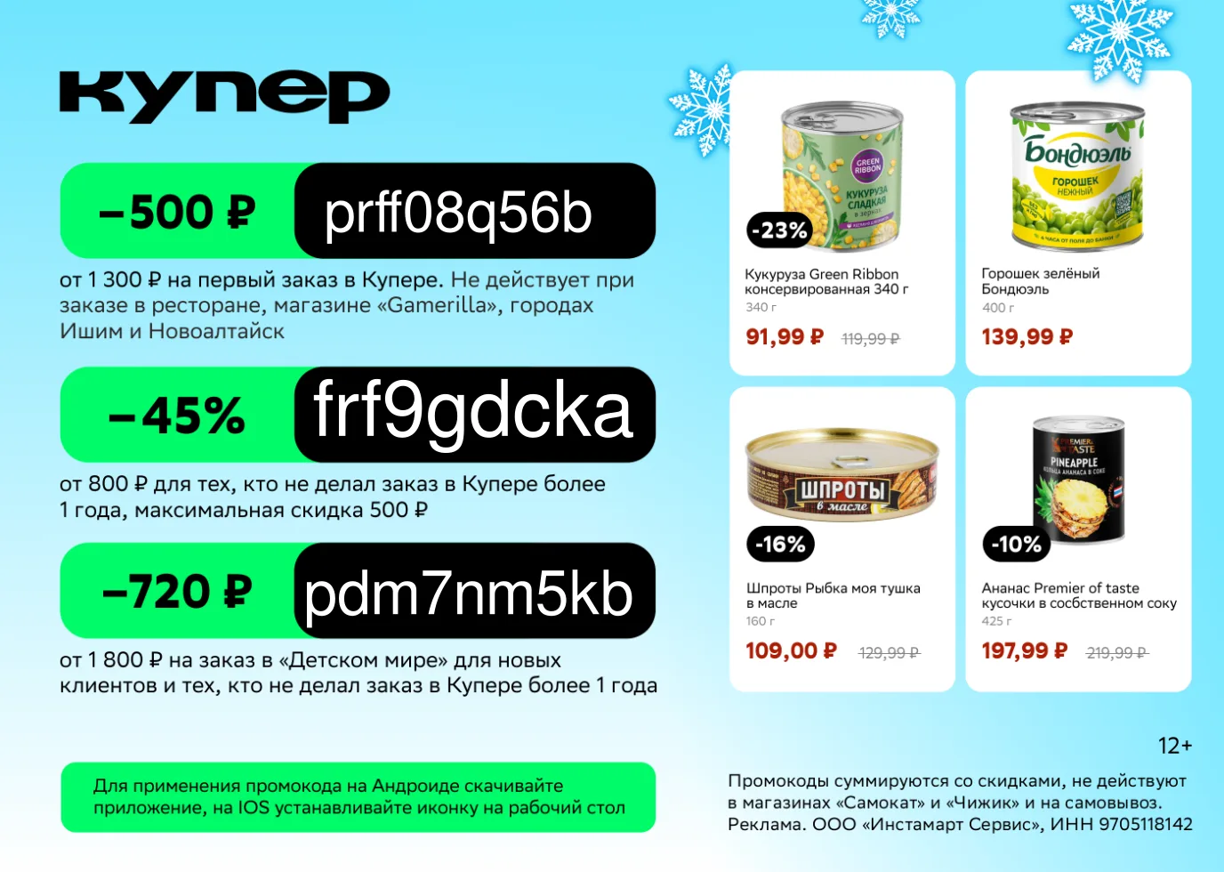 ✨ frf9gdcka - Скидка 45 % от 800 ₽ для всех, кто не делал заказ в «Купере» больше года! (Максимальный размер скидки — 500 ₽).