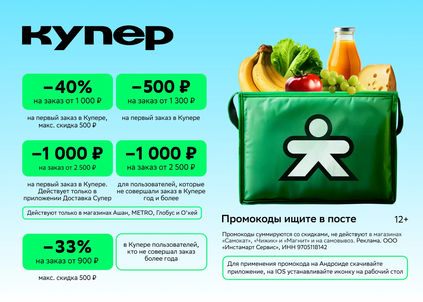 ✔️ pfo3j1erh - Скидка 40% на первый заказ в Купере от 1 000 ₽. (Максимально 500 ₽).