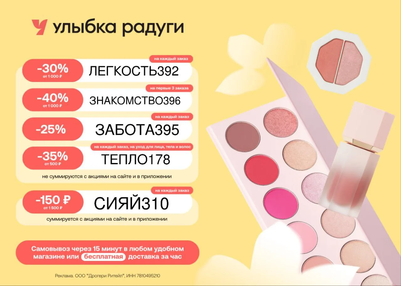 👉 СЧАСТЬЕ150 - скидка 30% на каждый заказ от 1 500 ₽;