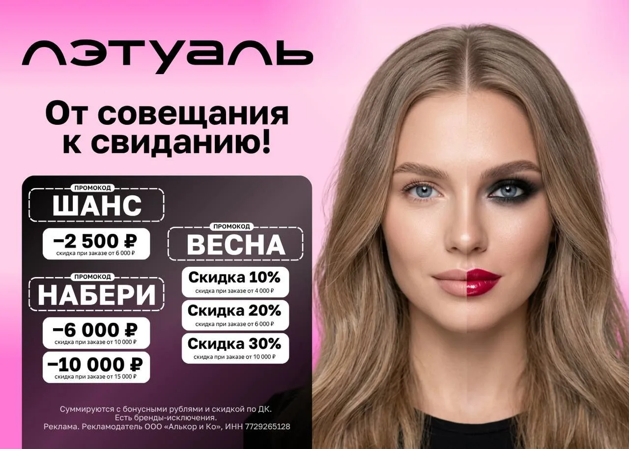 👉 Скидка действует на покупку билетов от 3000₽ для всех, кто уже совершал покупки. Лимита по сумме скидки нет!