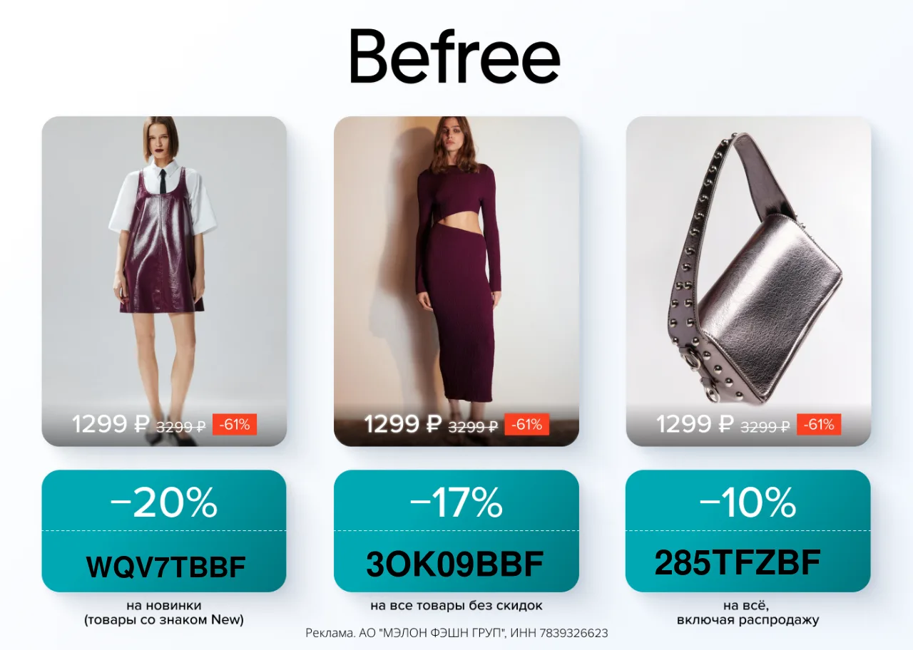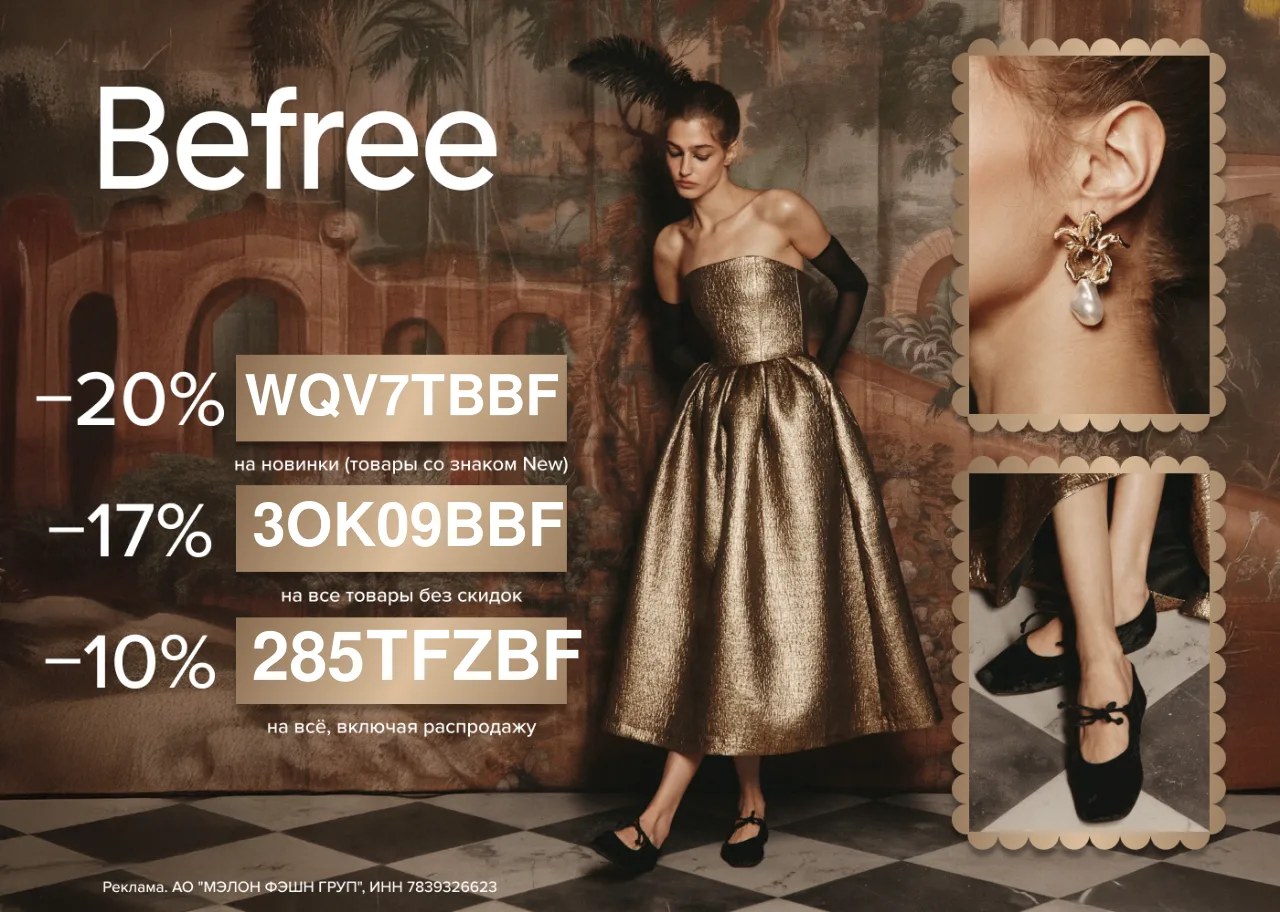 Найдены самые выгодные промокоды для покупок в интернет-магазине Befree 👈
