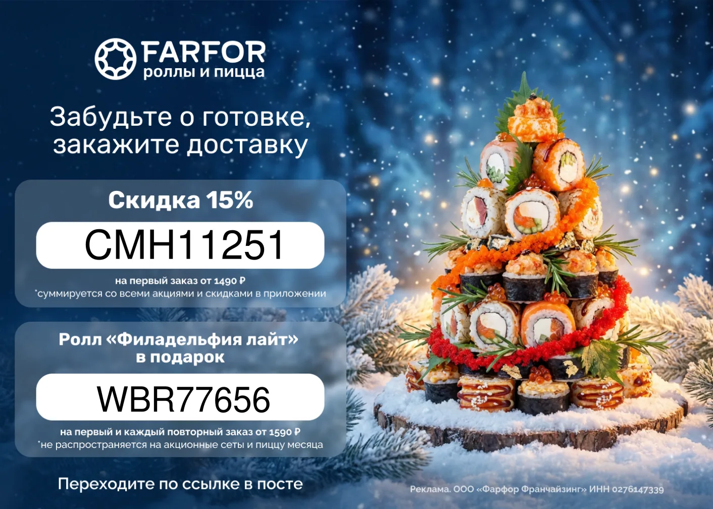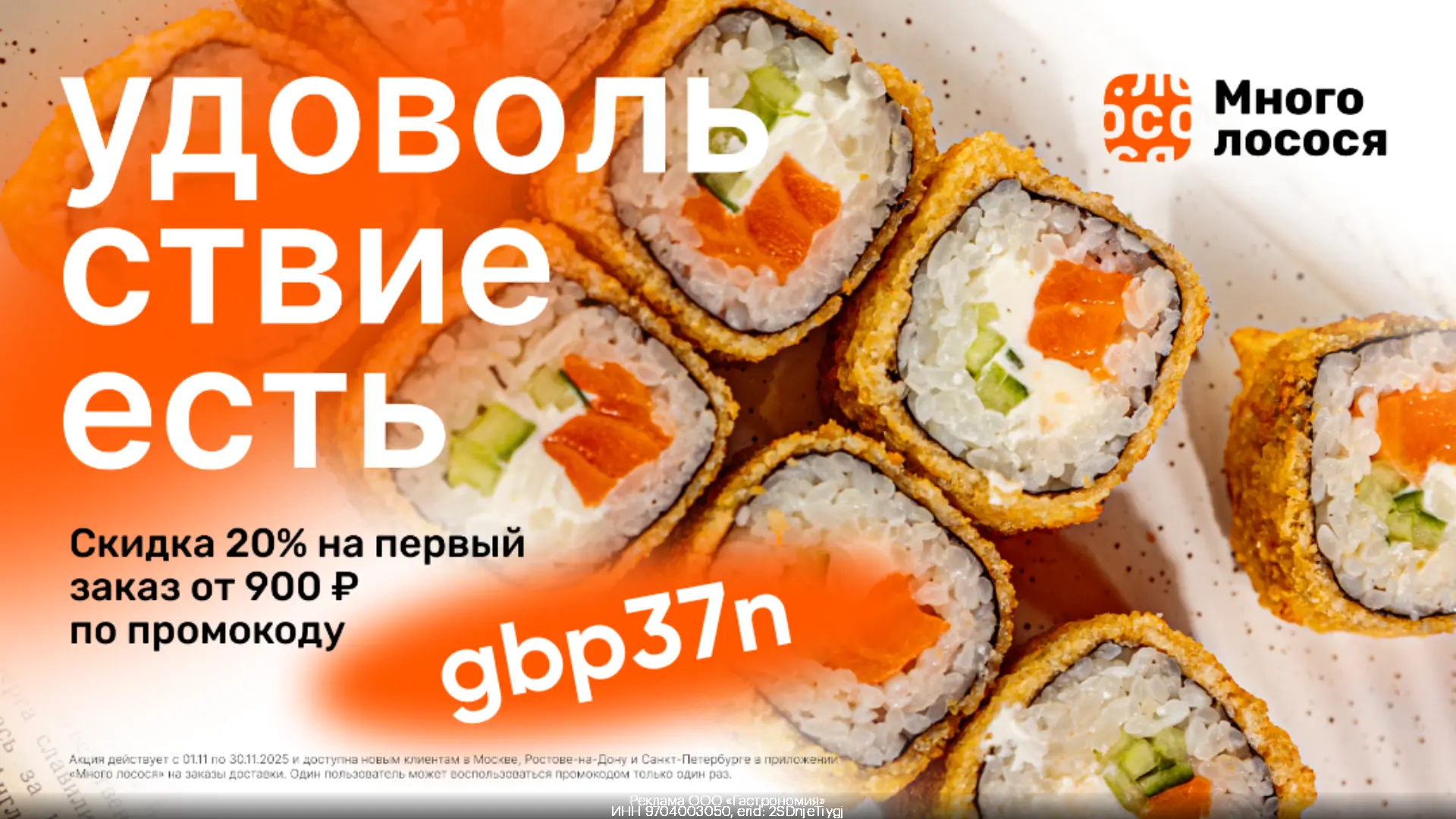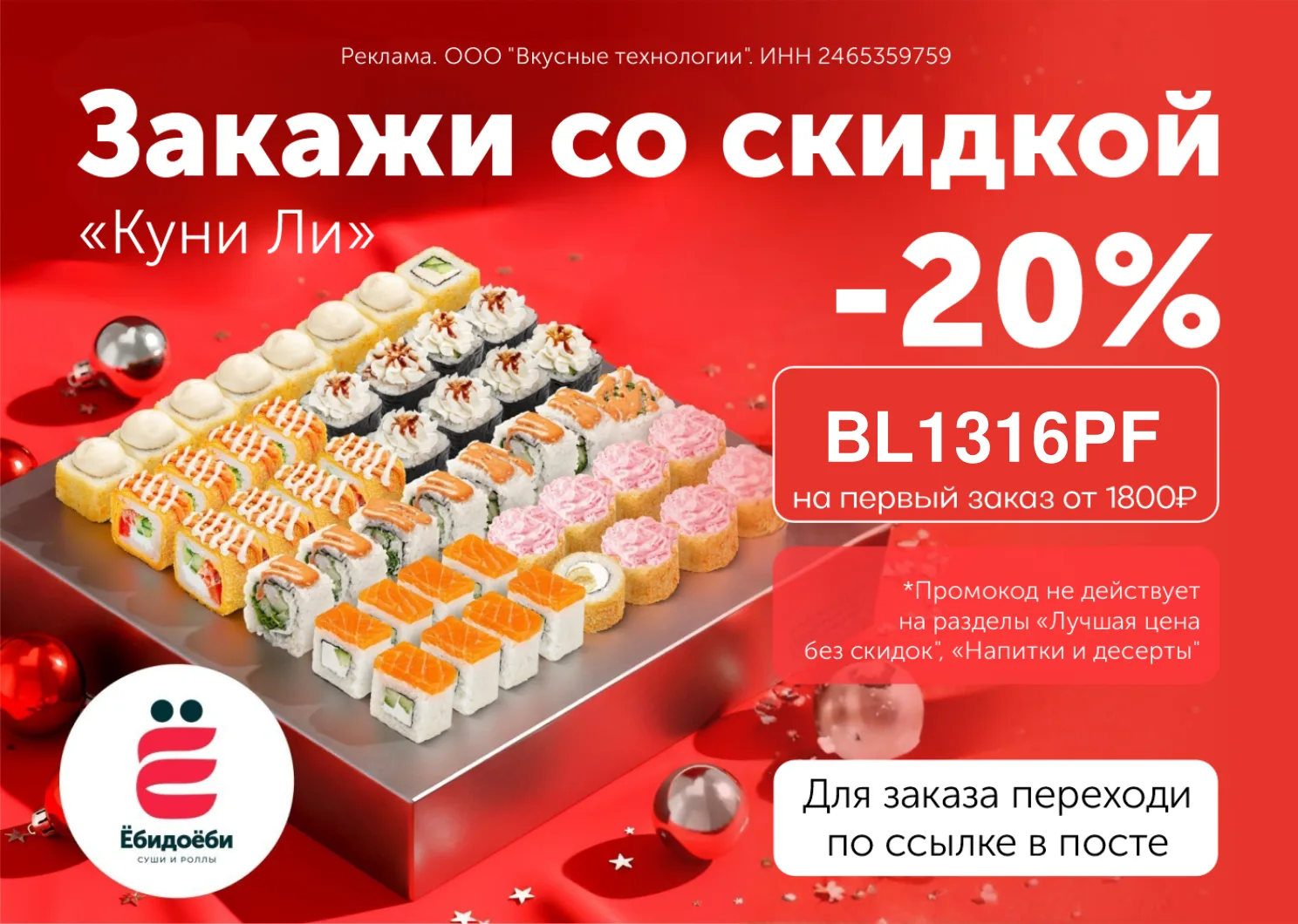 🍣 20DR1493 – скидка 20% на первый заказ от 1090₽;