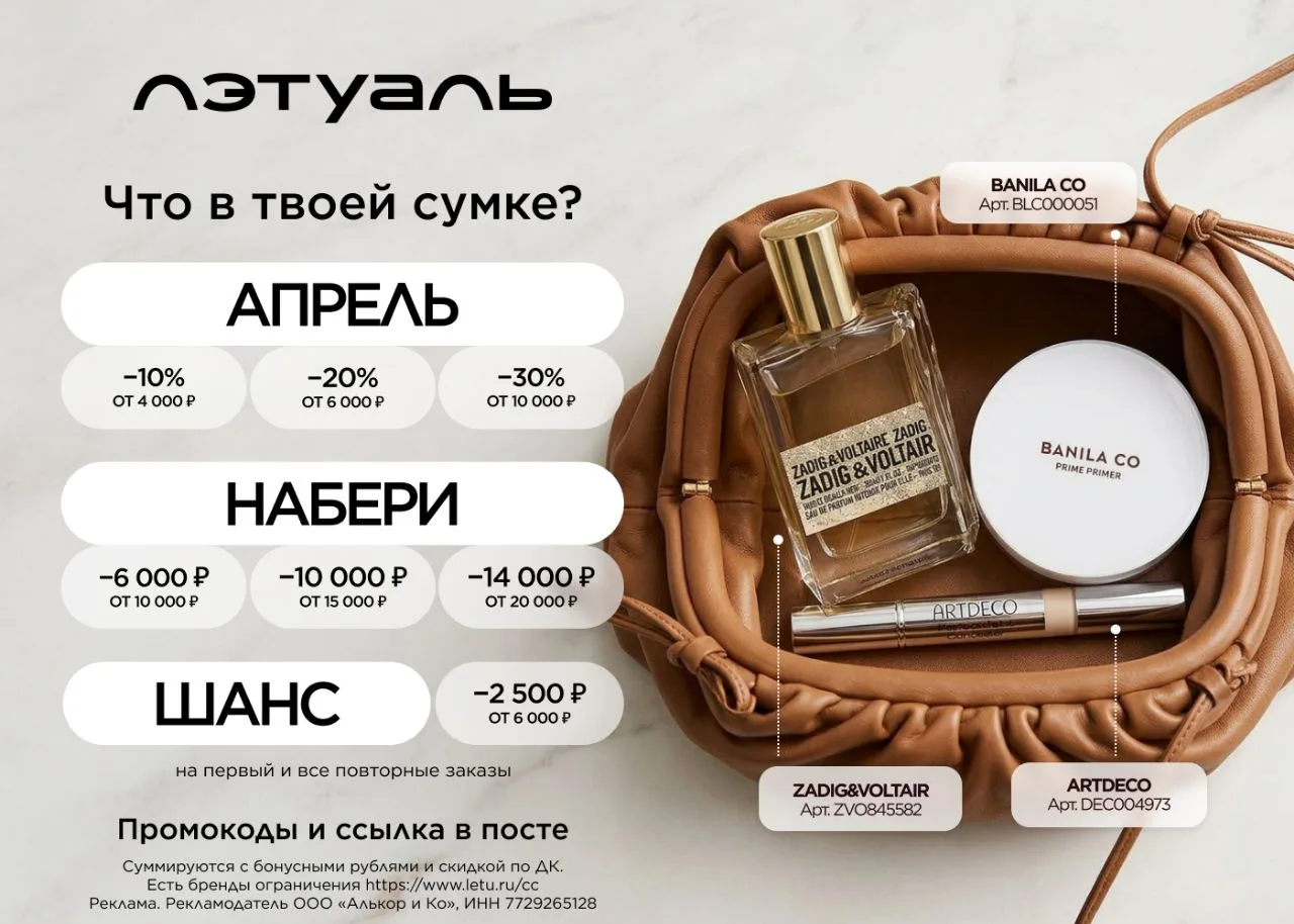 🌸 АПРЕЛЬ - скидка 10% на каждый заказ от 4 000 ₽/ 20% на каждый заказ от 6 000 ₽/ 30% на каждый заказ от 10 000 ₽