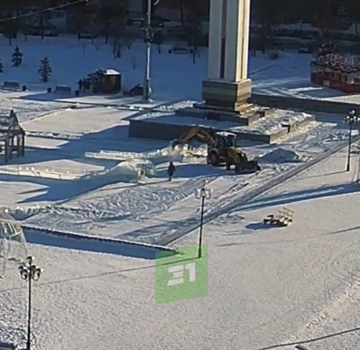 ⚠️Праздники закончились? В Магнитогорске начали сносить главный ледовый городок