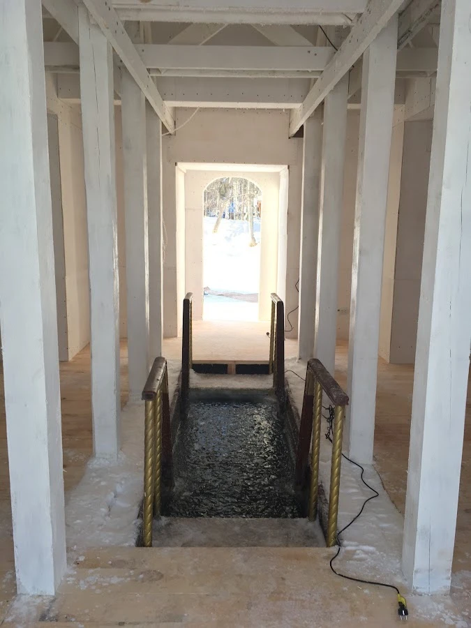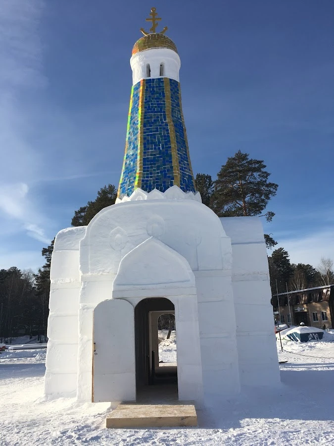 Это давняя традиция. Местные строят снежную часовню перед Крещением. Внутри здания – купель для верующих.