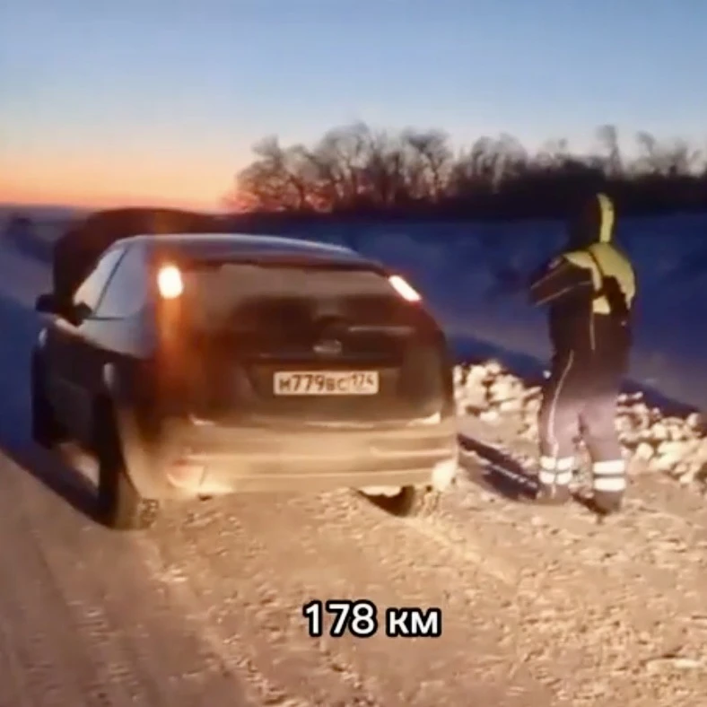 Сострудники ДПС заметили машину. Когда узнали, что произошло, остановили попутный транспорт и отправили семью в город.