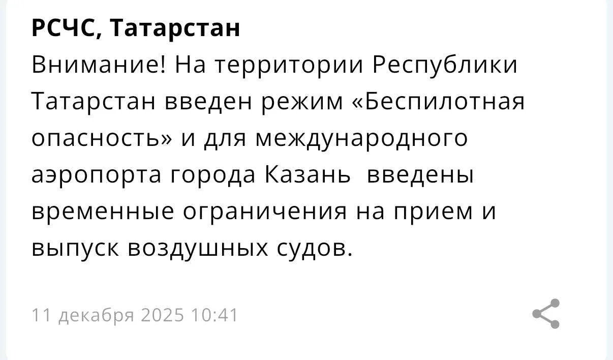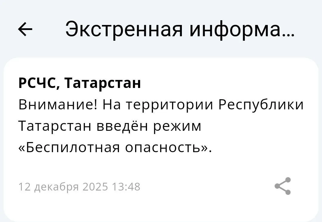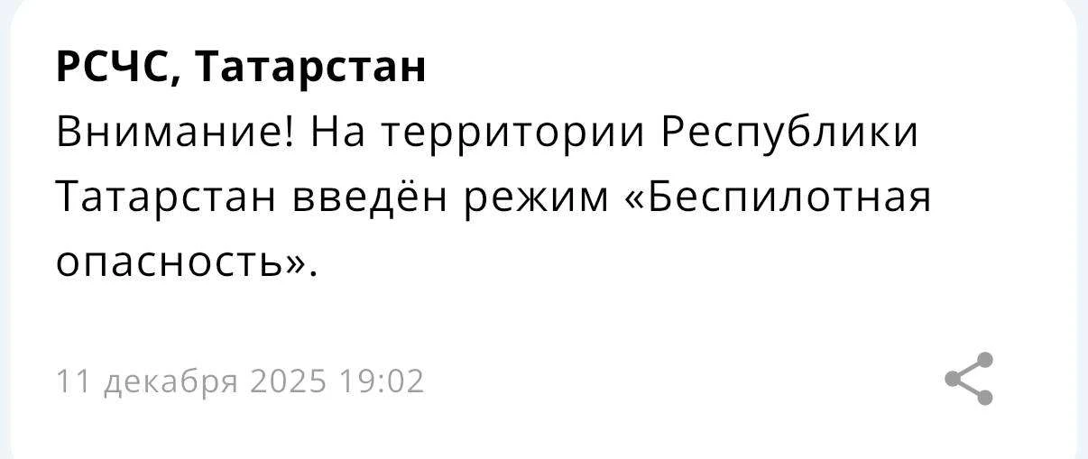 ❗️В Татарстане снова объявлен режим «Беспилотная опасность